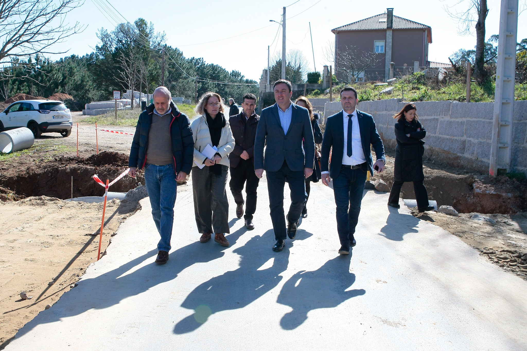 Valentín González Formoso e José Ramón Romero supervisaron hoxe o reinicio dos traballos tras a rescisión do anterior contrato xunto coa deputada provincial Sandra González e o tenente alcalde Luis Ruíz