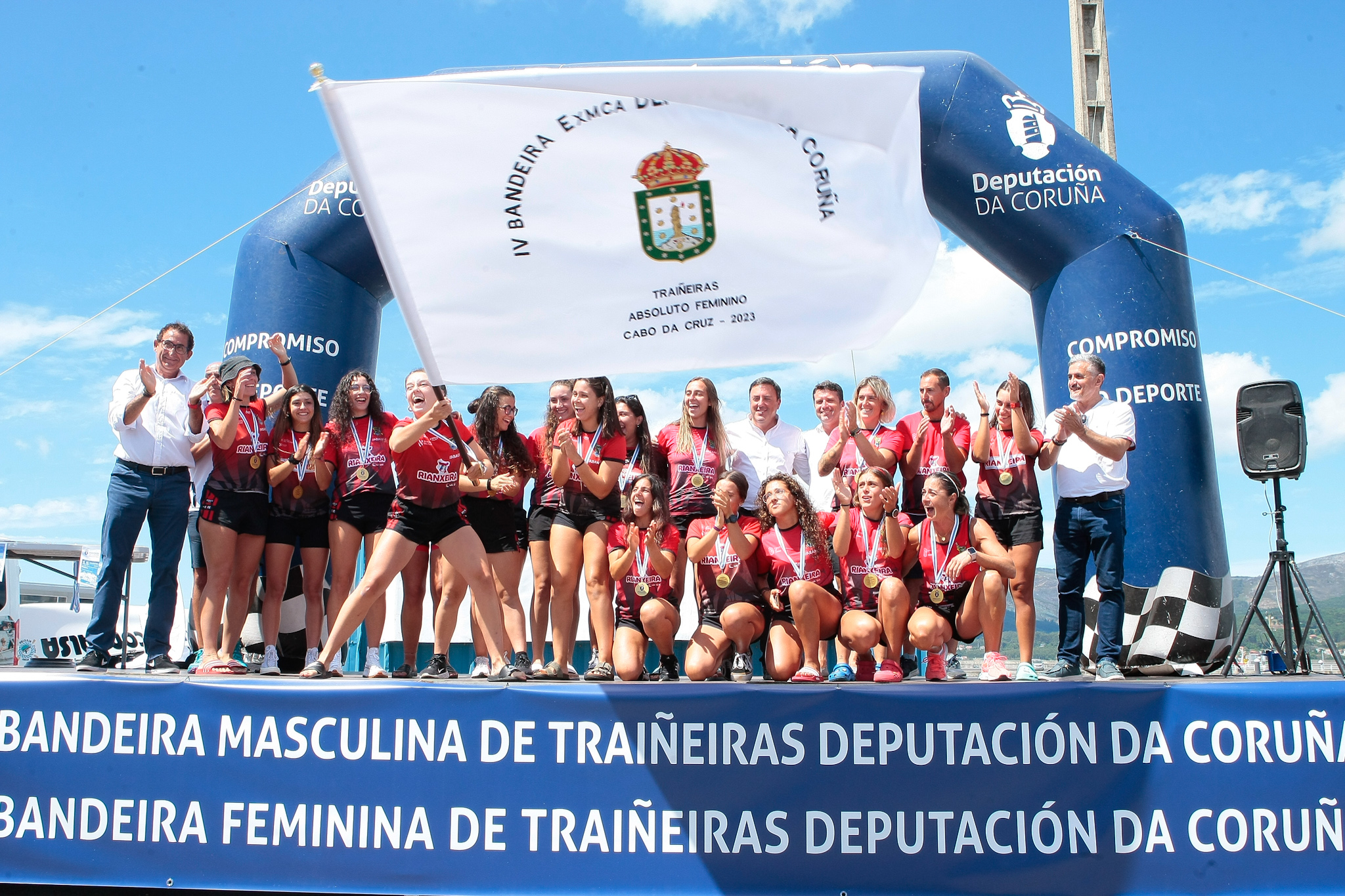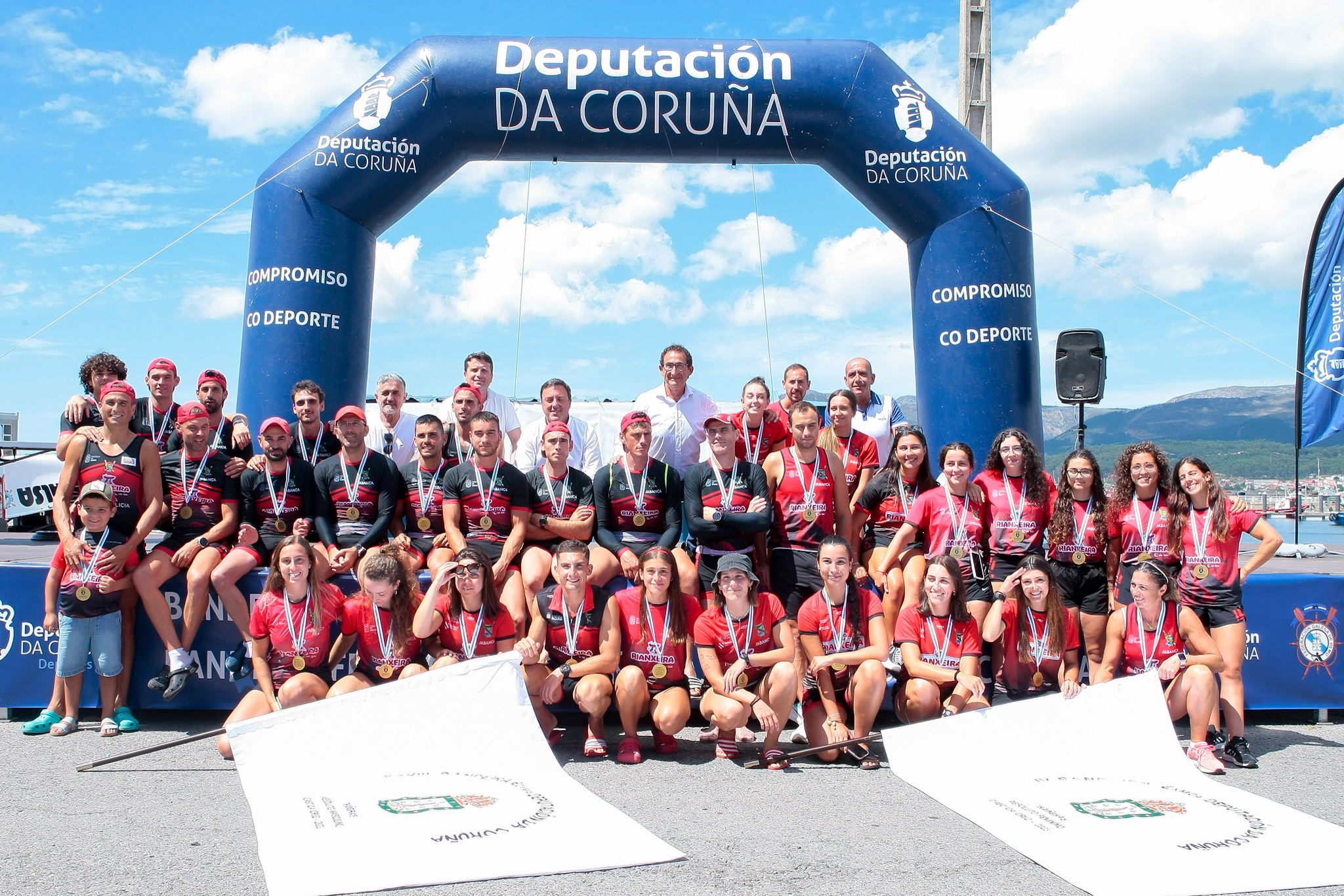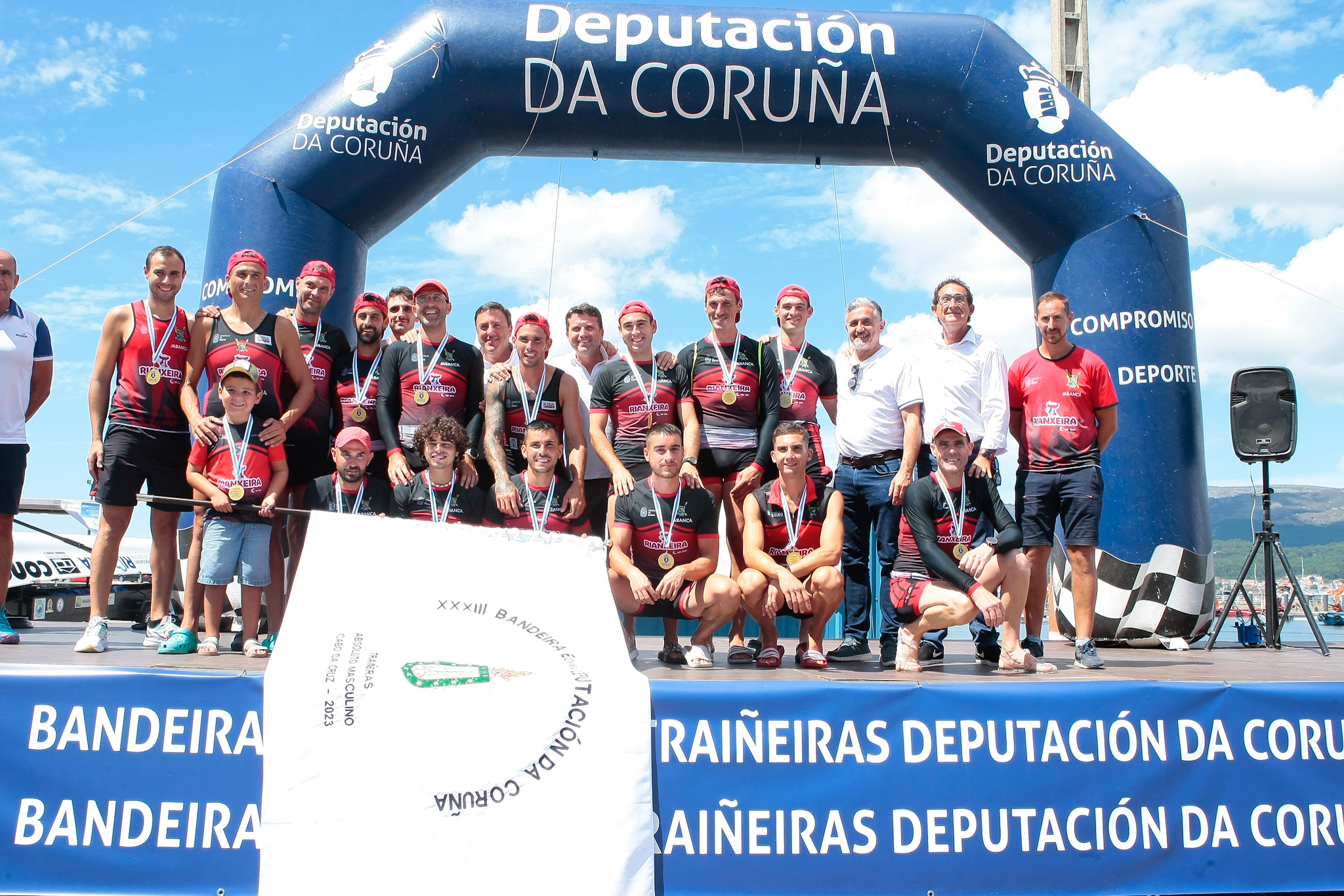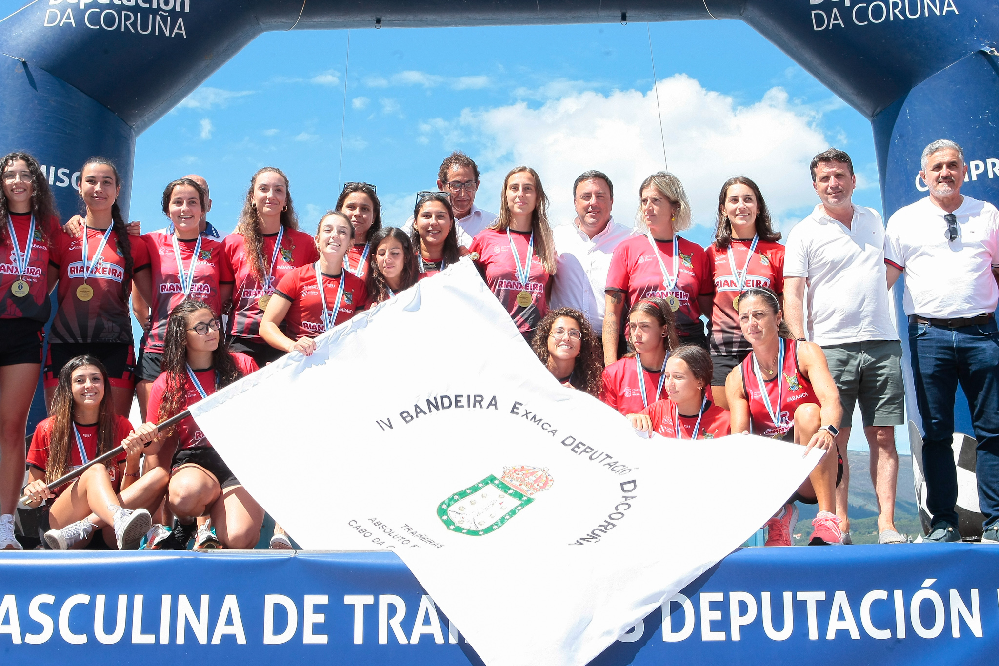 O presidente da Deputación da Coruña, Valentín González Formoso, o alcalde de Boiro, José Ramón Romero, o deputado de Deportes, Antonio Leira Piñeiro, e o presidente da Federación Galega de Remo, José Luís Méndez, foron os encargados de entregar as medallas e a Bandeira Deputación ás tripulacións gañadoras.