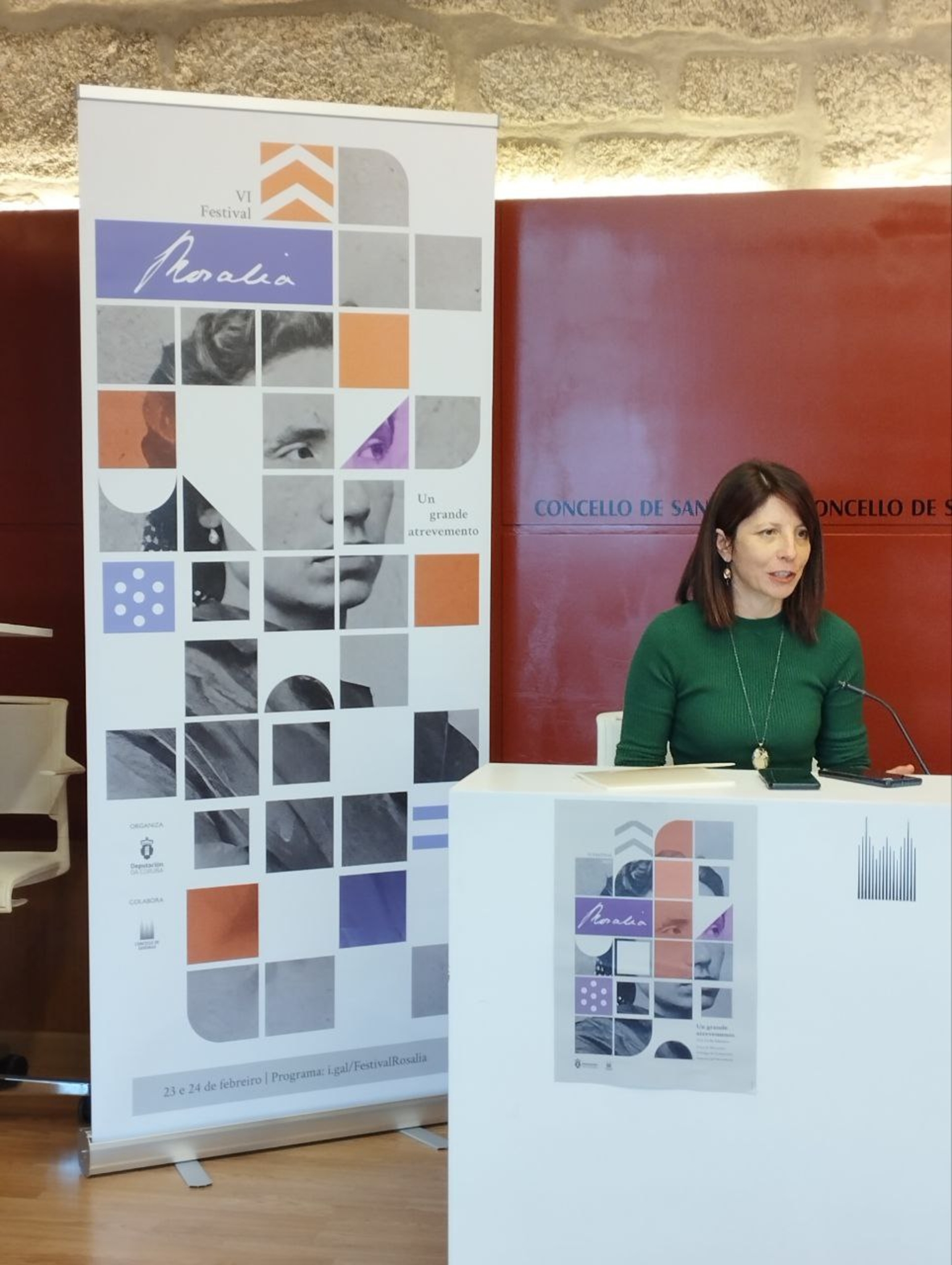 O Festival Rosalía, organizado pola Deputación da Coruña en colaboración co Concello de Santiago de Compostela, celebrará os vindeiros días 23 e 24 de febreiro a súa sexta edición para conmemorar o 187º nacemento da escritora, figura poliédrica das nosas letras que ano a ano continúa a se enriquecer a medida que evoluciona a nosa cultura. O programa deste 2024, que terá na compostelá praza de Mazarelos o seu epicentro, desenvolverase baixo o lema "Un grande atrevemento" e conxugará poesía, escena, música, artesanía e narración oral para celebrar a potencia creadora na nosa lingua. En total, o Festival Rosalía ofrecerá unha quincena de actividades repartidas entre o venres 23 e o sábado 24 de febreiro.