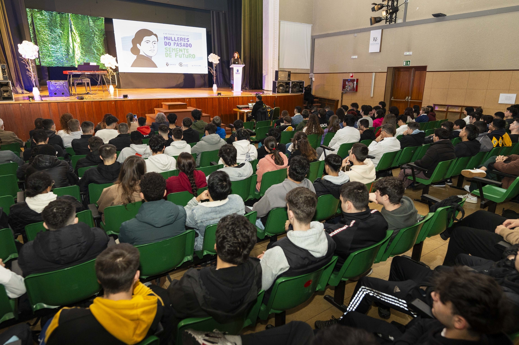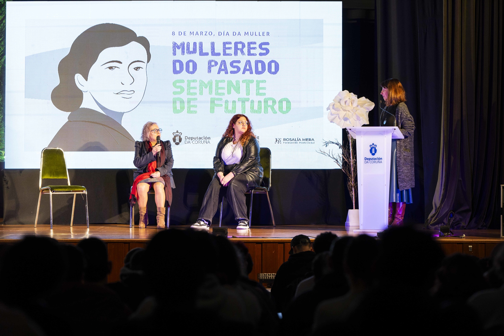 Coa actuación musical de Carla Valiño, da Asociación de Estudantes do Conservatorio Superior de Música da Coruña (ASECOSMAC) ao principio e ao final da xornada, o acto contou tamén coa intervención do director do centro, Genaro García. Finaliza así a campaña do 8M da Deputación "Mulleres do pasado, semente de futuro", que "se enmarca nun plan de igualdade que vai máis aló deste día e que propón a busca da igualdade real nos diferentes espazos da vida".