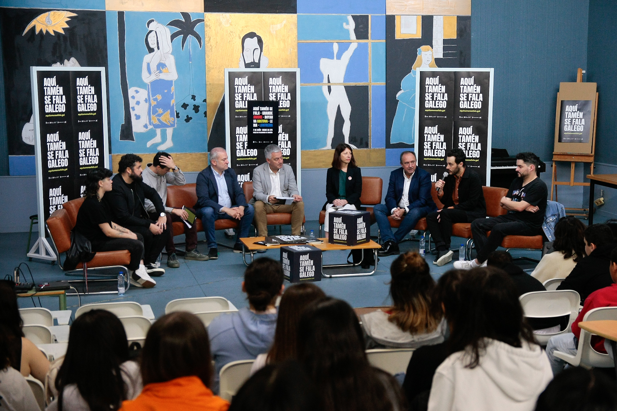 O IES Rafael Dieste acolleu esta mañá a presentación do cartel do primeiro festival de música en galego 'Aquí Tamén Se Fala', que, co apoio da Deputación, celebrarase o venres 7 de xuño, desde as 17 horas, na praza da Tolerancia, na Coruña, onde subirán ao escenario as bandas Grande Amore, Boyanka Kostova, Leria e Lontreira.