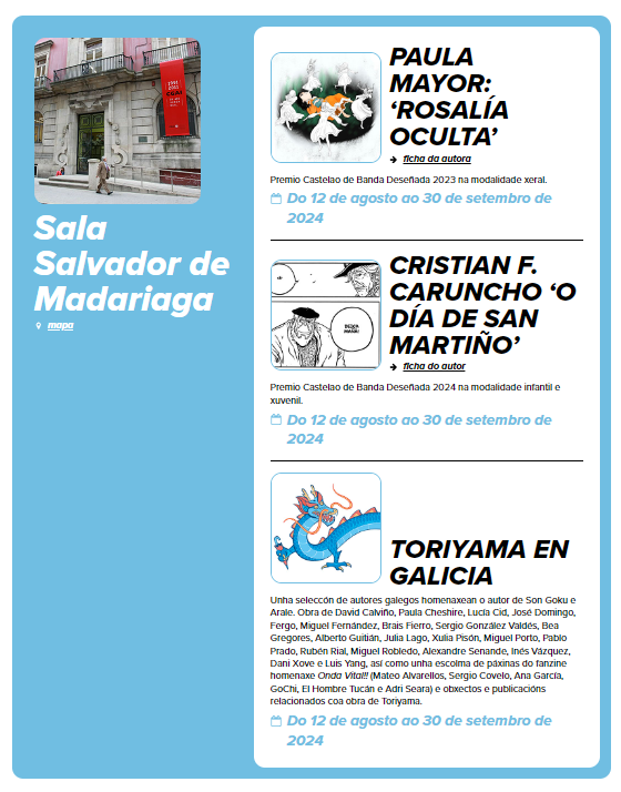 Ata finais de setembro podedes visitar as exposicións que forman parte do evento.