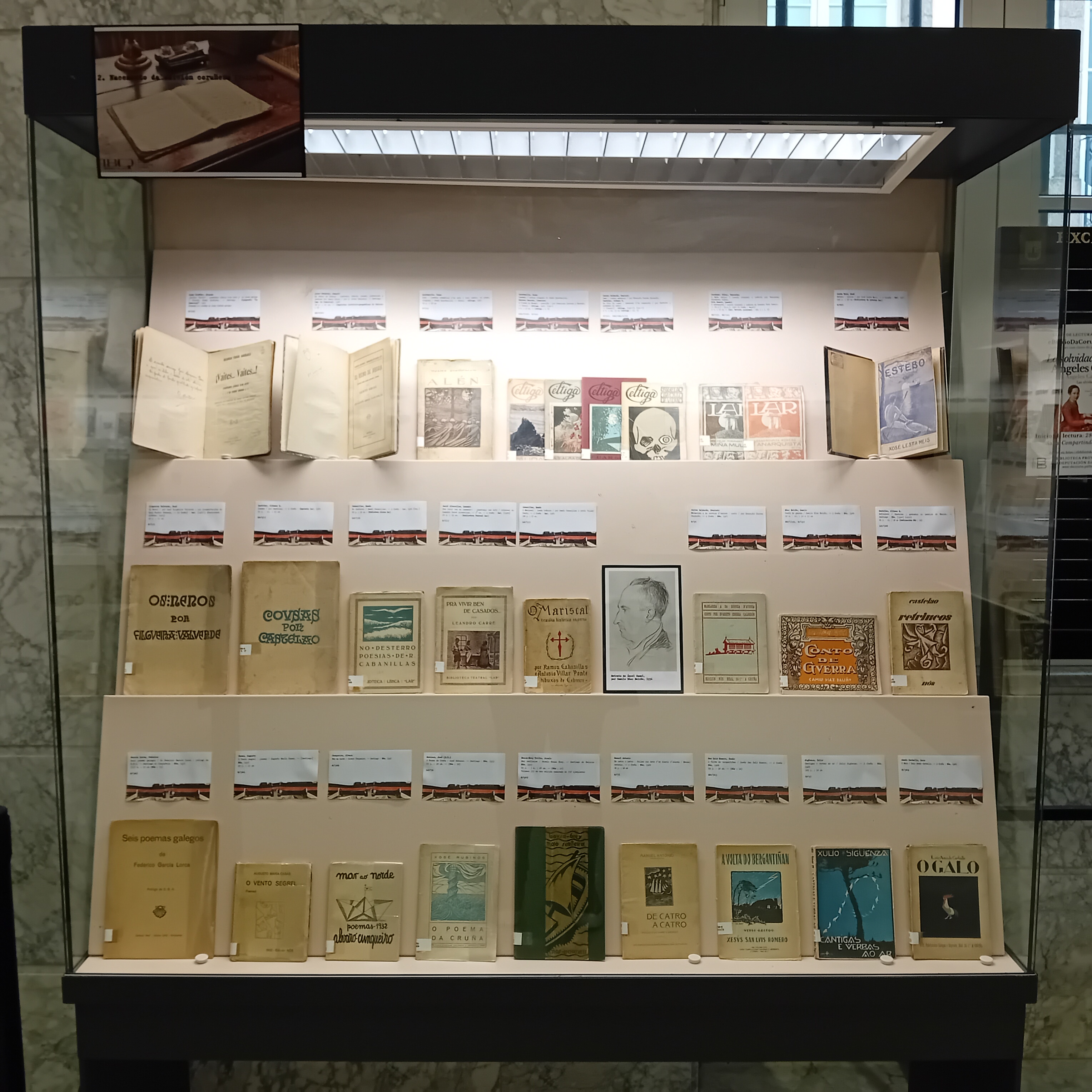 En 1921 fúndase en Ferrol a editorial Céltiga. Entre os seus obxectivos estaban publicar narrativa e teatro en galego, e que as obras se distribuísen de maneira masiva. Esta é a data de inicio dun novo momento no devir da edición na provincia, e en Galicia, xa que Céltiga foi a primeira en crear un sistema de traballo editorial moderno. Este modelo empresarial será secundado por outras editoras deste período. As editoriais representadas nesta vitrina son: La Comercial, Céltiga, Lar e Nós.