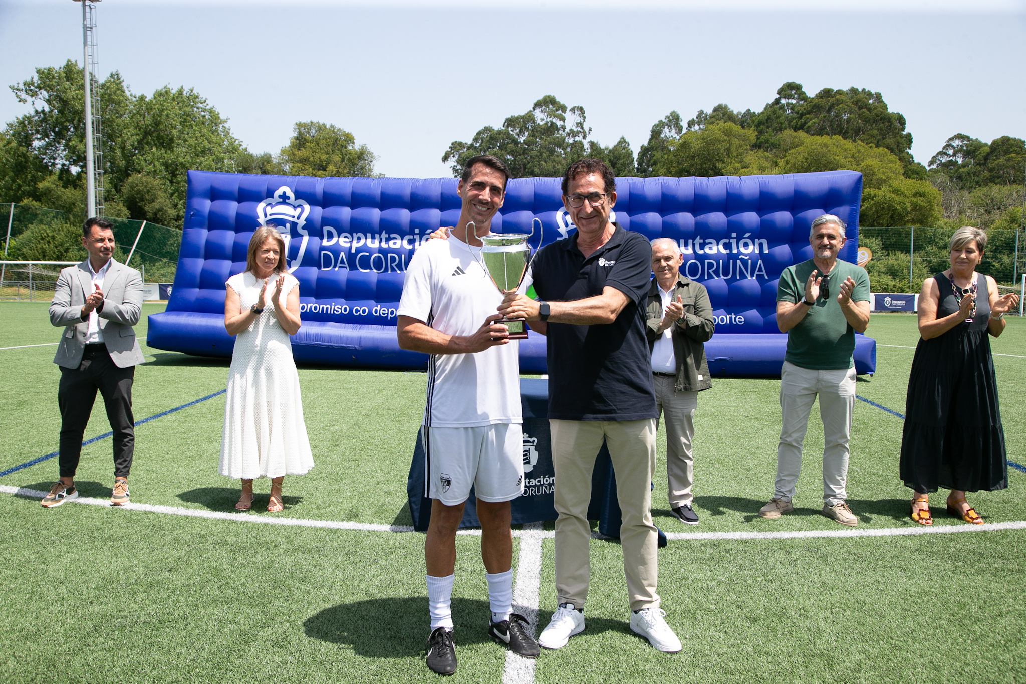 Tras os encontros, o deputado de Deportes, Antonio Leira; o vicepresidente da Federación Galega de Fútbol para A Coruña, Juan Luis Villamisar; a deputada provincial María del Mar Méndez; o concelleiro de Deportes de Boiro, Marcos Fajardo, e a concelleira de Deportes de Oleiros, Teresa Vázquez Maseda, entregaron os trofeos ás capitanas e capitáns dos equipos.