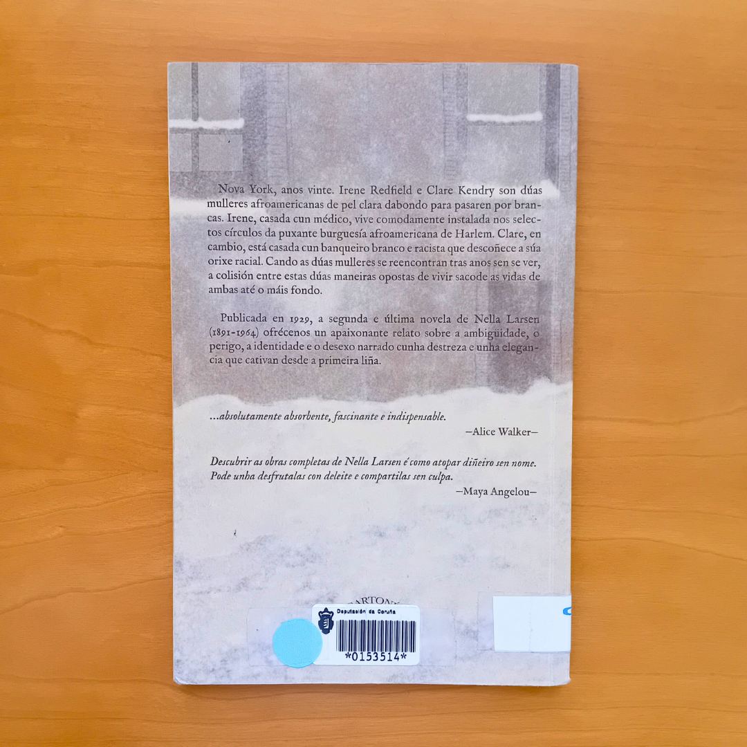 Hoxe en día este texto de Nella Larsen non ten tradución ao castelán, algo que conseguen as editoras que traballan directamente cos textos orixinais. Unha marabilla de título do que podemos gozar na nosa lingua.