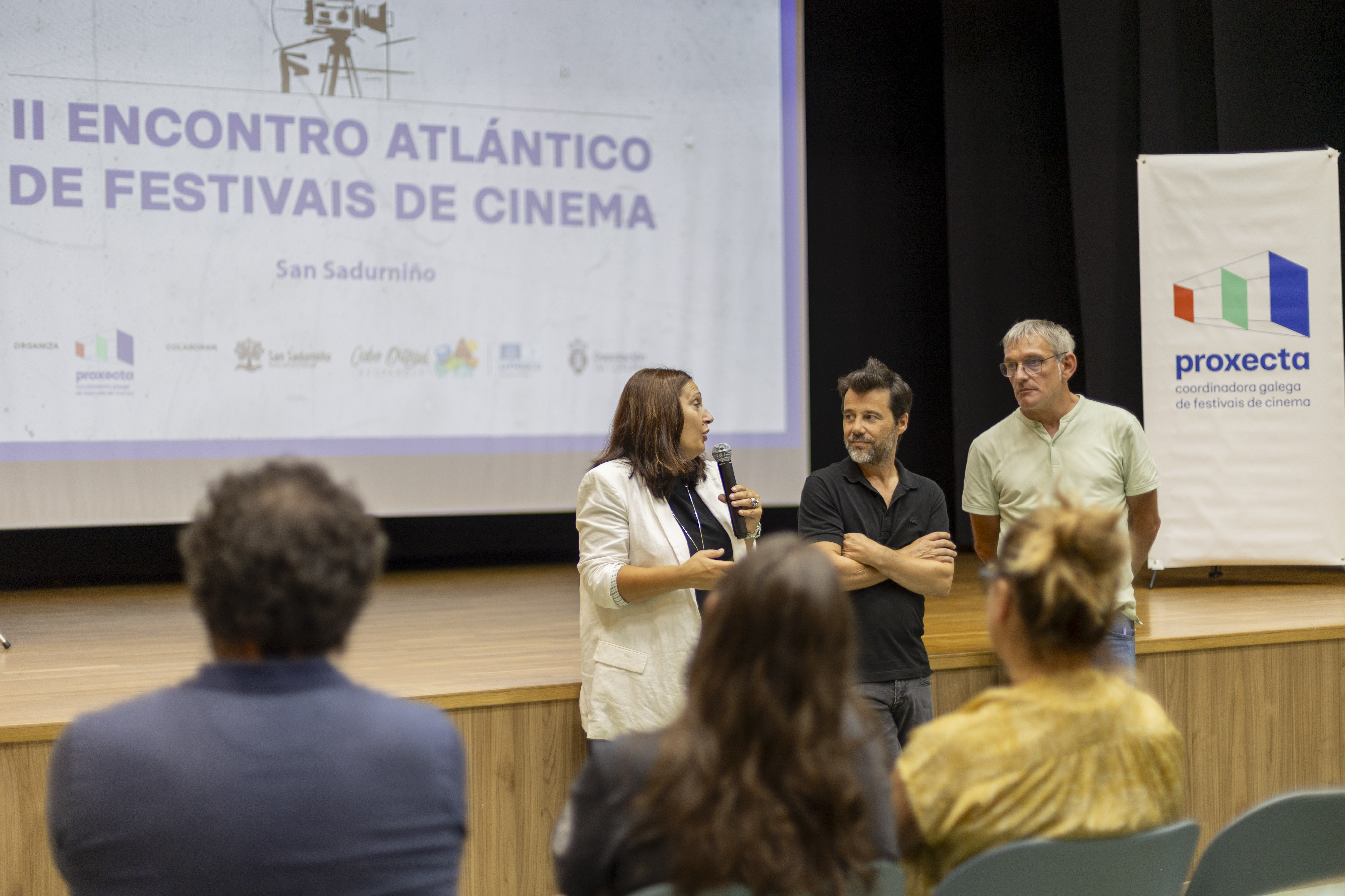 A deputada de cultura, Natividade González, participou esta mañá na inauguración do II Encontro Atlántico de Festivais de Cinema organizado por PROXECTA, que se celebra hoe en San Sadurniño. Trátase dun espazo de diálogo e reflexión que reúne a profesionais do sector audiovisual para compartir experiencias, analizar retos comúns e fortalecer redes colaborativas.