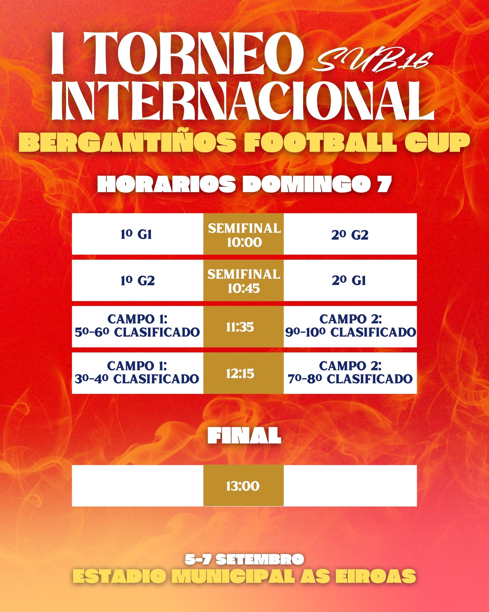 O formato de competición promete emocións: partidos de 40 minutos, sistema de liguiña e dous grupos cuxos dous primeiros clasificados pasarán a semifinais. A final disputarase o domingo ás 13 horas. No grupo A competirán o Barcelona, Porto, Celta, Athletic Club e Under Amor, e no grupo B Atlético de Madrid, Valencia, Real Sociedad, Deportivo e Bergantiños.