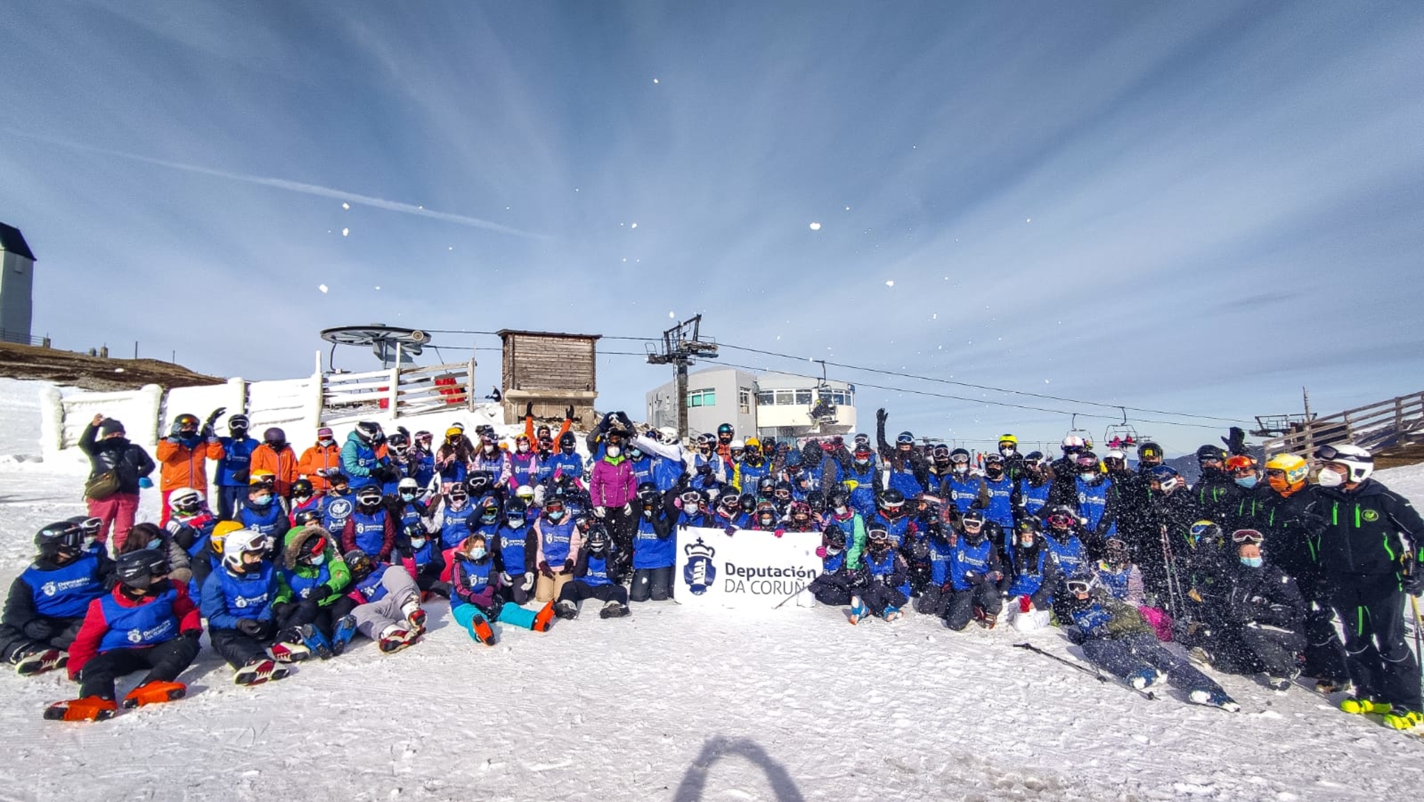 Un centenar de nenas e nenos de entre 11 e 15 anos dos concellos de Cabana de Bergantiños, Carballo, Carnota, Cee, Cerceda, Corcubión, Coristanco, Dumbría, Fisterra, A Laracha, Laxe, Malpica, Mazaricos, Muxía, Ponteceso, Santa Comba, Tordoia, Vimianzo e Zas participaron na estación invernal de Valgrande-Pajares (Asturias) na primeira expedición á neve da Campaña de Esquí 2022, organizada pola área de Deportes da Deputación da Coruña.
