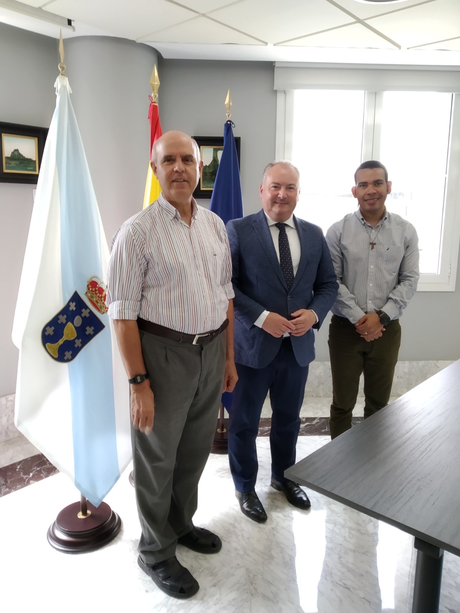 Os sacerdotes Patricio Larrosa e Enrique Ruíz, representantes da Asociación Colaboración y Esfuerzo (ACOES), entidade que leva máis de 24 anos traballando en promover proxectos sociais en barrios marxinais de Tegucigalpa e noutras zonas desfavorecidas de Honduras como Copán, La Paz ou Comayagua, foron recibidos está mañá na sede da Deputación da Coruña polo deputado da área de Cooperación José Ramón Rioboo.