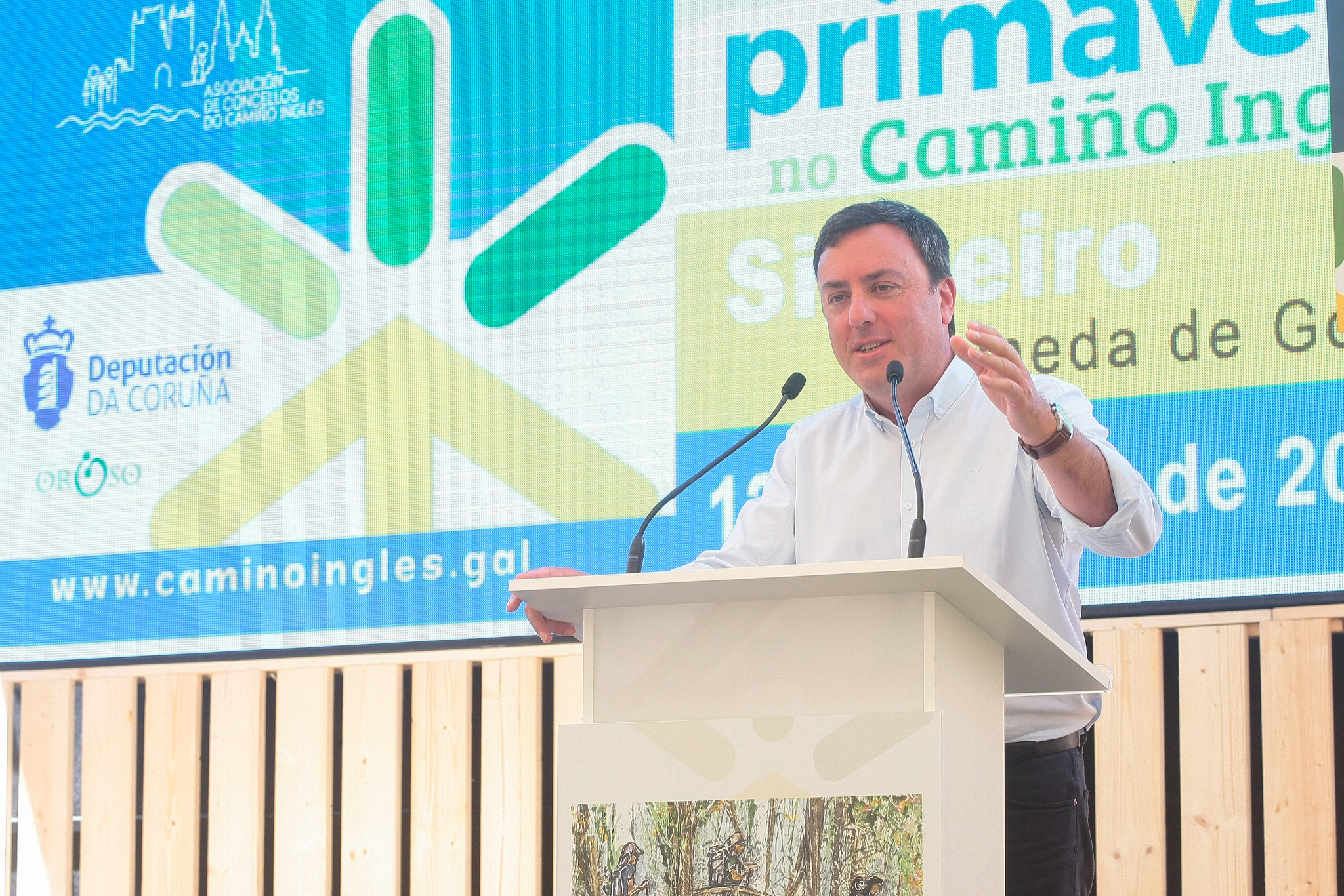 Pola súa banda, o presidente da Asociación de Concellos do Camiño Inglés, Manuel Mirás, inaugurou o acto xunto ao presidente provincial e convidou a todas as persoas presentes a "descubrir o Camiño Inglés. Porque fronte á masificación doutras rutas, nós ofrecemos singularidade e destacou a "singularidade, autenticidade, seguridade, calidade, patrimonio, paisaxe, cultura, gastronomía... todo isto conforma o Camiño Inglés". Mirás lembrou que esta edición de Primavera no Camiño se celebra en Oroso porque "se van cumprir os trinta anos dunha reunión do Comité técnico da Asemblea de Alcaldes do Camiño Real. Por iso hoxe, case 30 anos despois, é xusto agradecer o traballo dos representantes políticos e traballadores municipais dos 18 municipios presentes hoxe, así como o apoio da Deputación da Coruña e da Xunta".