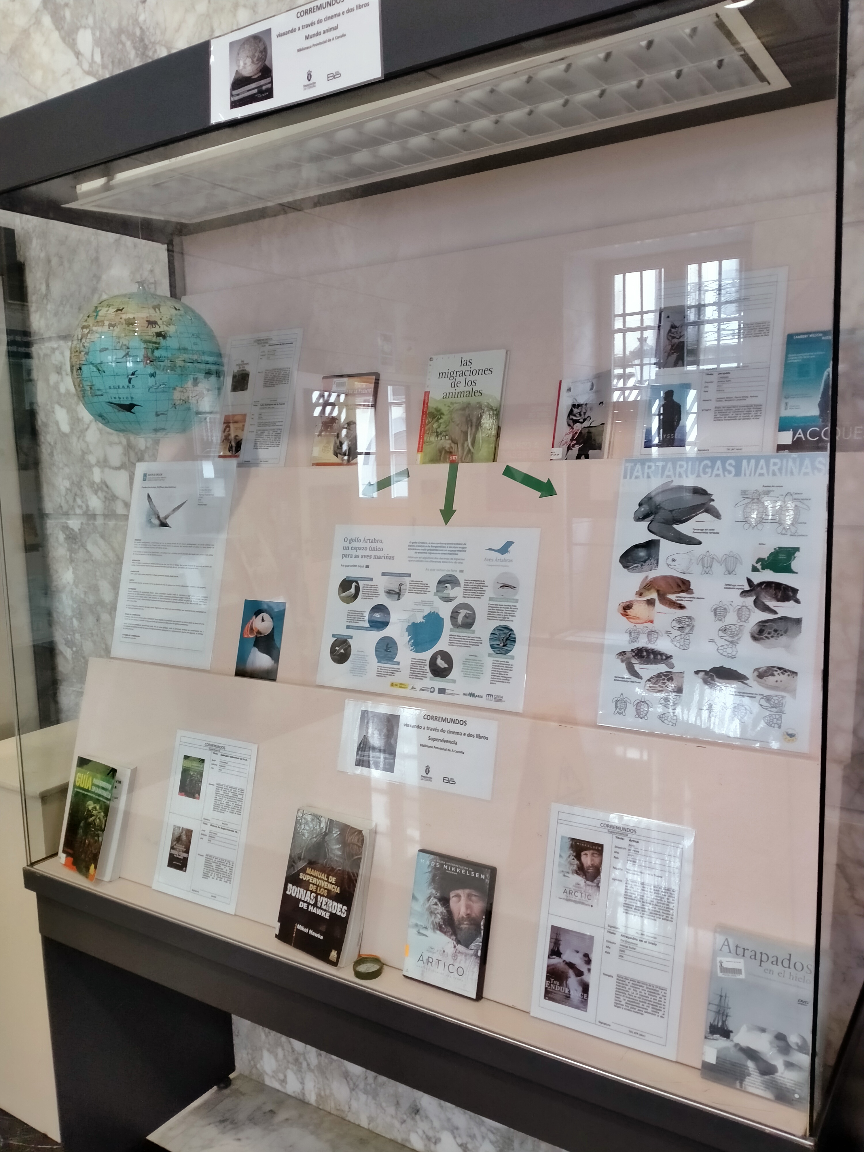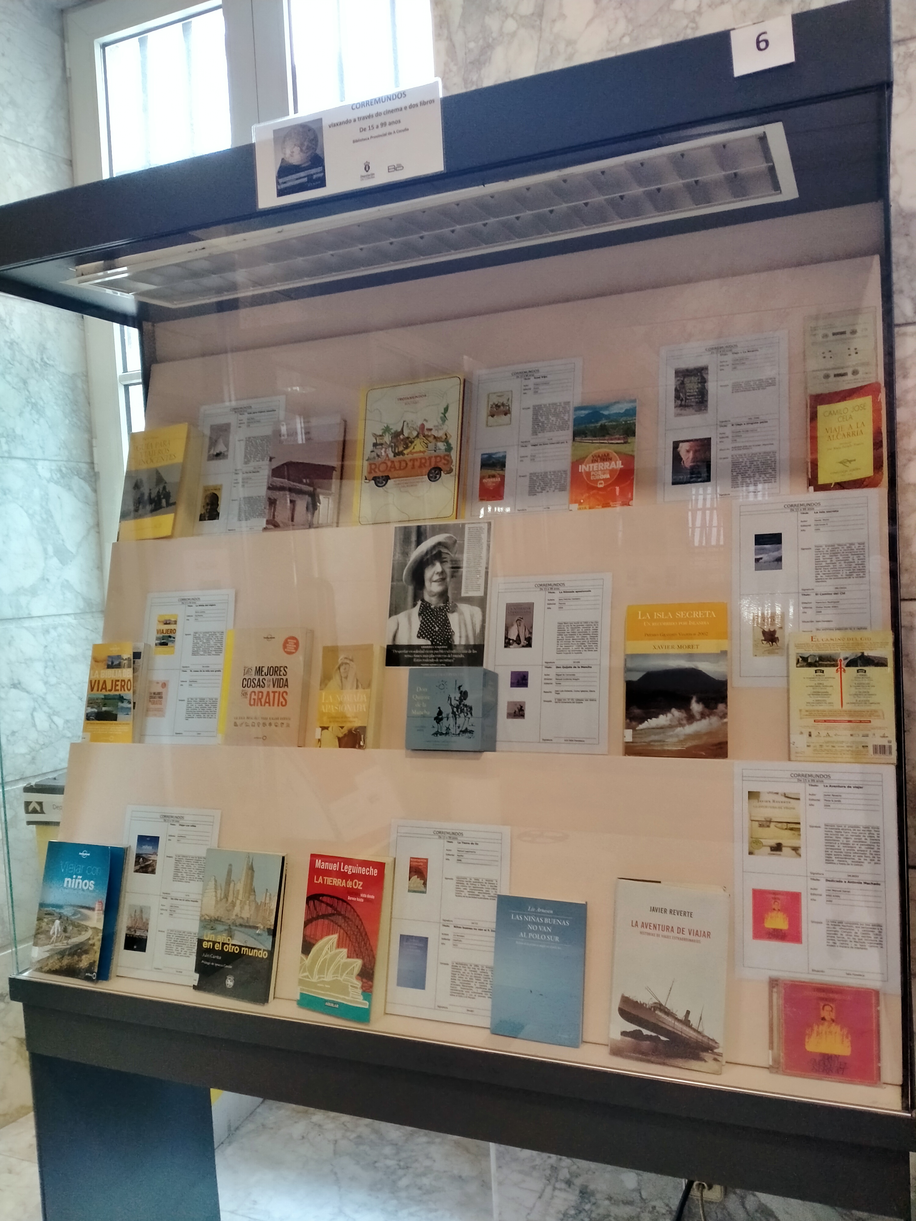 Xa podedes desfrutar dunha nova mostra bibliográfica nas 7 vitrinas da entrada da Biblioteca: coñeceremos a grandes viaxeiros da historia, lugares afastados da Coruña, aqueles libros e albumes onde aprendemos a ler que espertaron a nosa imaxinación de cativos, cinema de acción, fantasía, intriga... onde nos fixeron soñar con ser o protagonista de aventuras no Amazonas, no deserto ou na Patagonia.
