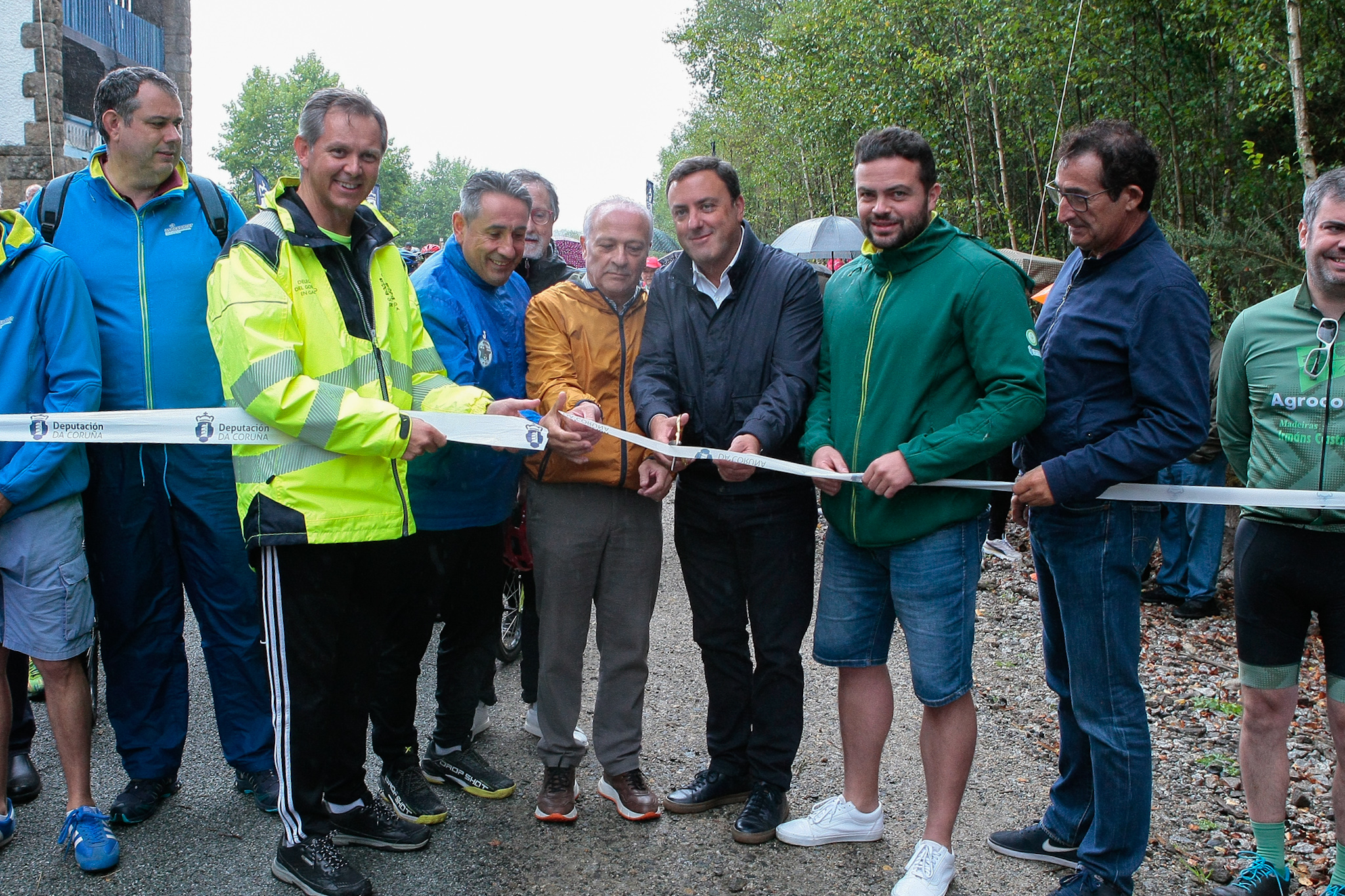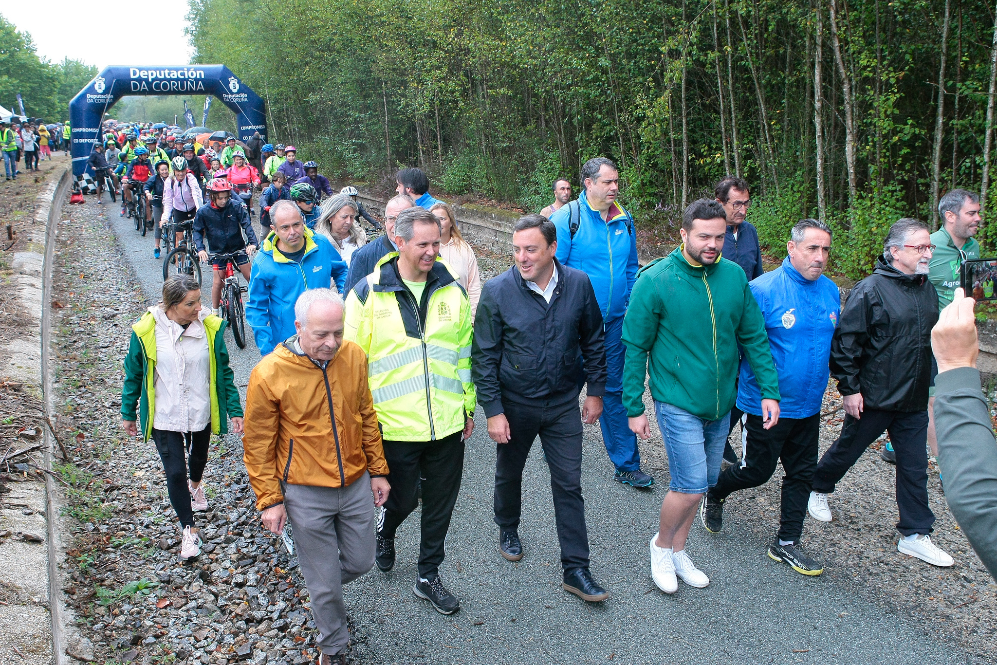 A pesar da chuvia, máis de 600 persoas de todas as idades que participaron, de xeito totalmente gratuíto, na andaina e marcha cicloturista popular organizada para inaugurar o tramo que vai de Cerceda a Oroso da Vía Verde.
