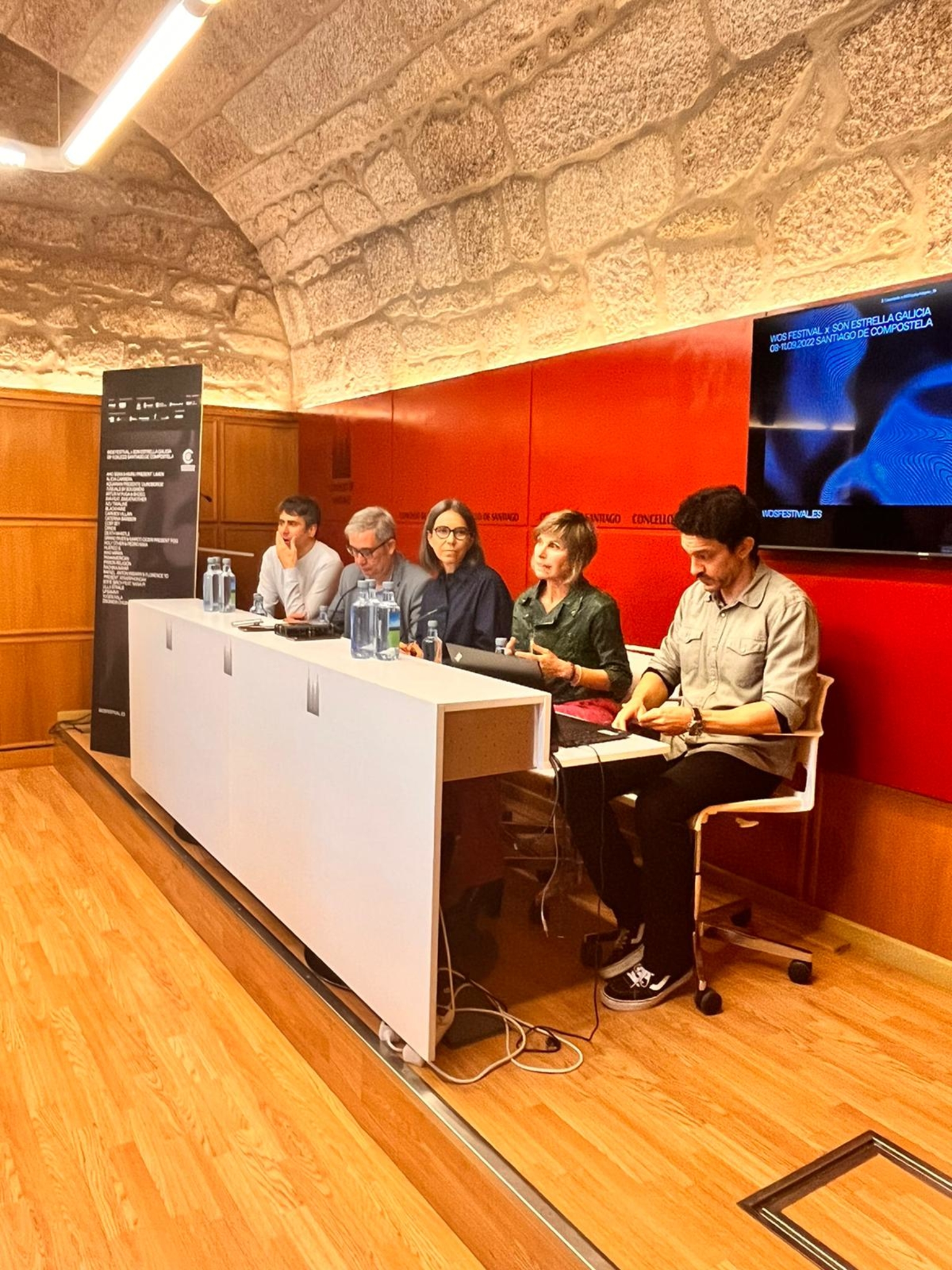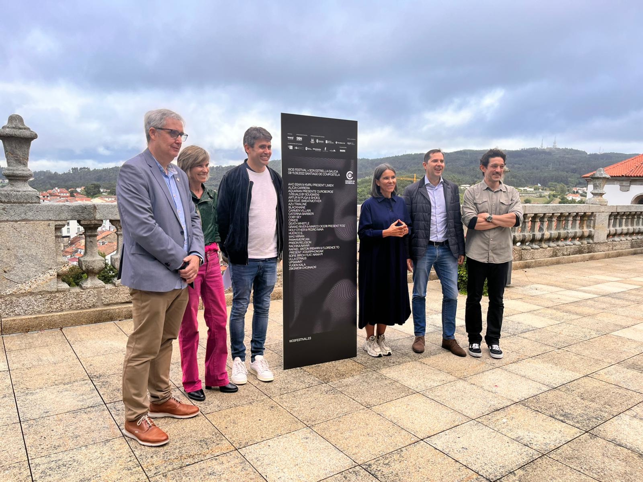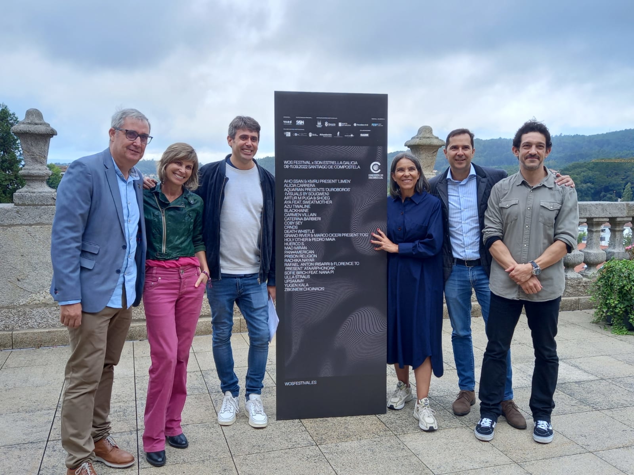A nova entrega de WOS Festival x SON Estrella Galicia presentouse esta mañá nunha rolda de prensa no Pazo de Raxoi coa participación do director do festival, Iván Arias, a tenente de alcalde e concelleira de Acción Cultural de Santiago de Compostela, Mercedes Rosón, o deputado de Promoción Económica da Deputación de A Coruña, Blas García; a directora de Turismo de Galicia, Nava Castro, o director de AGADIC, Jacobo Sutil, e o responsable de patrocinios musicais de Estrella Galicia, Víctor Martiñán.