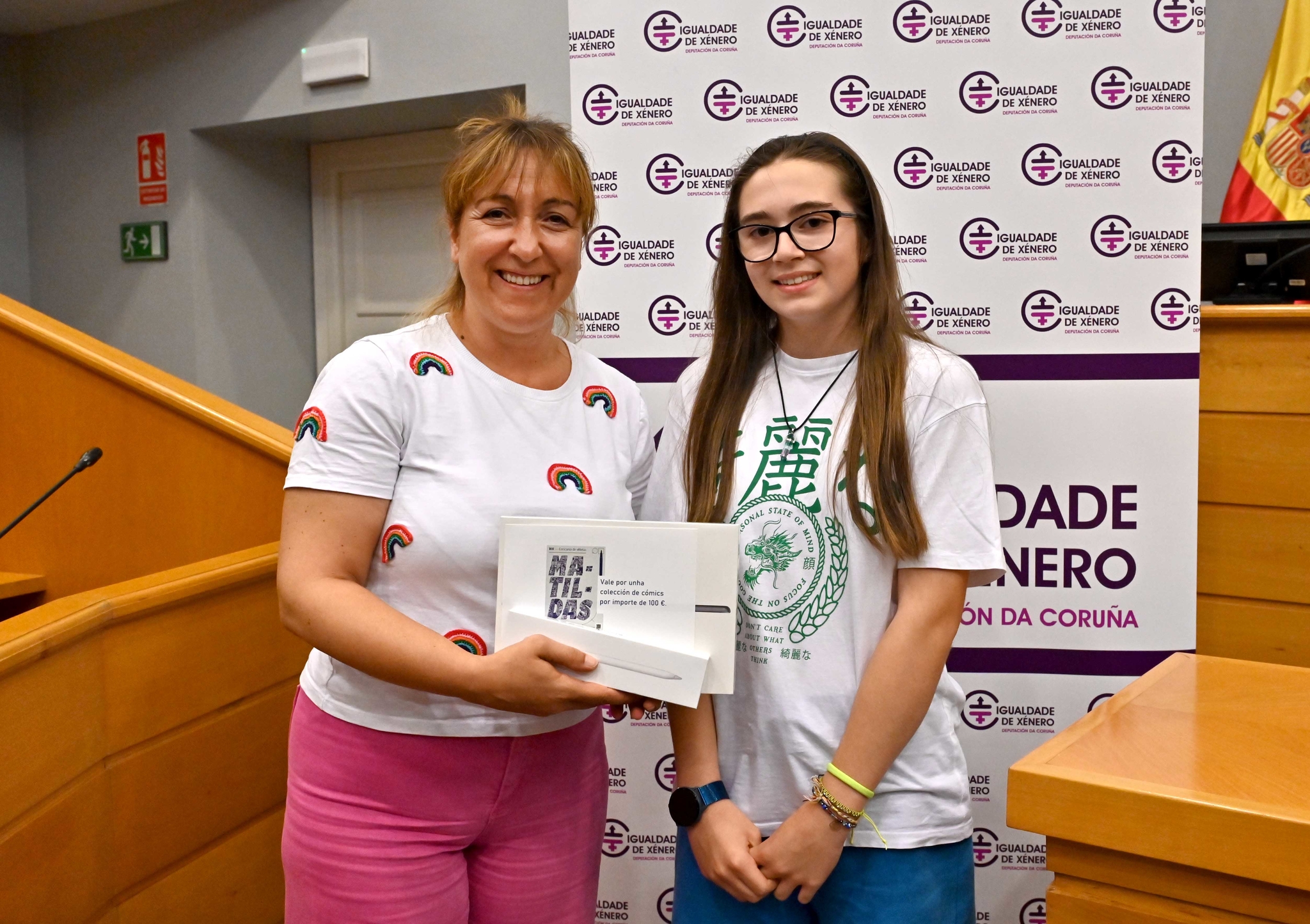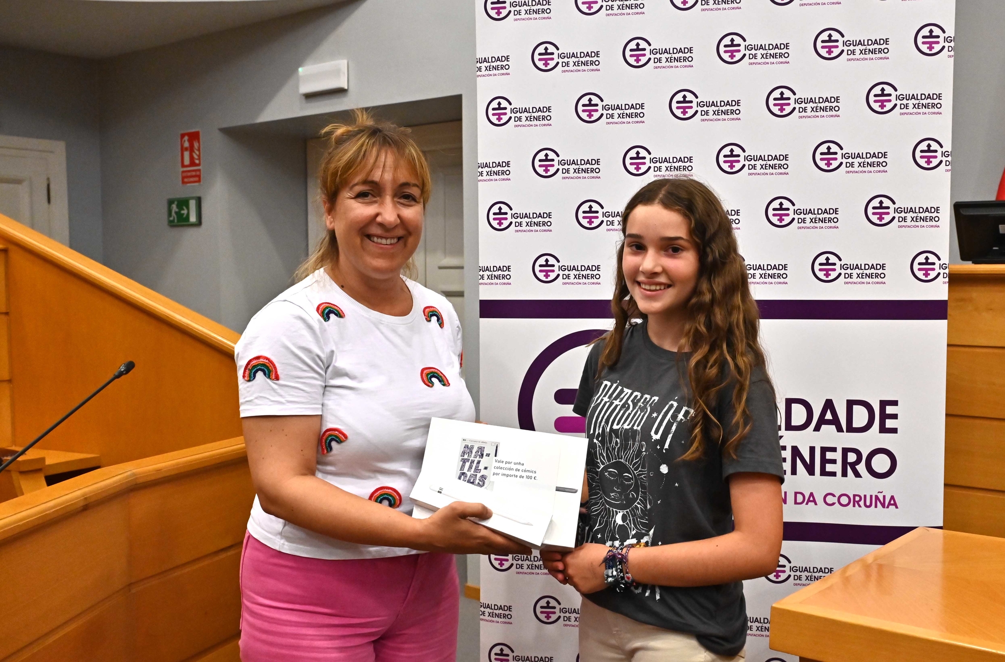 María Muíño, que fixo entrega de material educativo e electrónico, animou as gañadoras a "facer uso do don da creatividade para difundir valores de igualdade, xustiza social e promover o cambio cara a unha sociedade máis igualitaria"