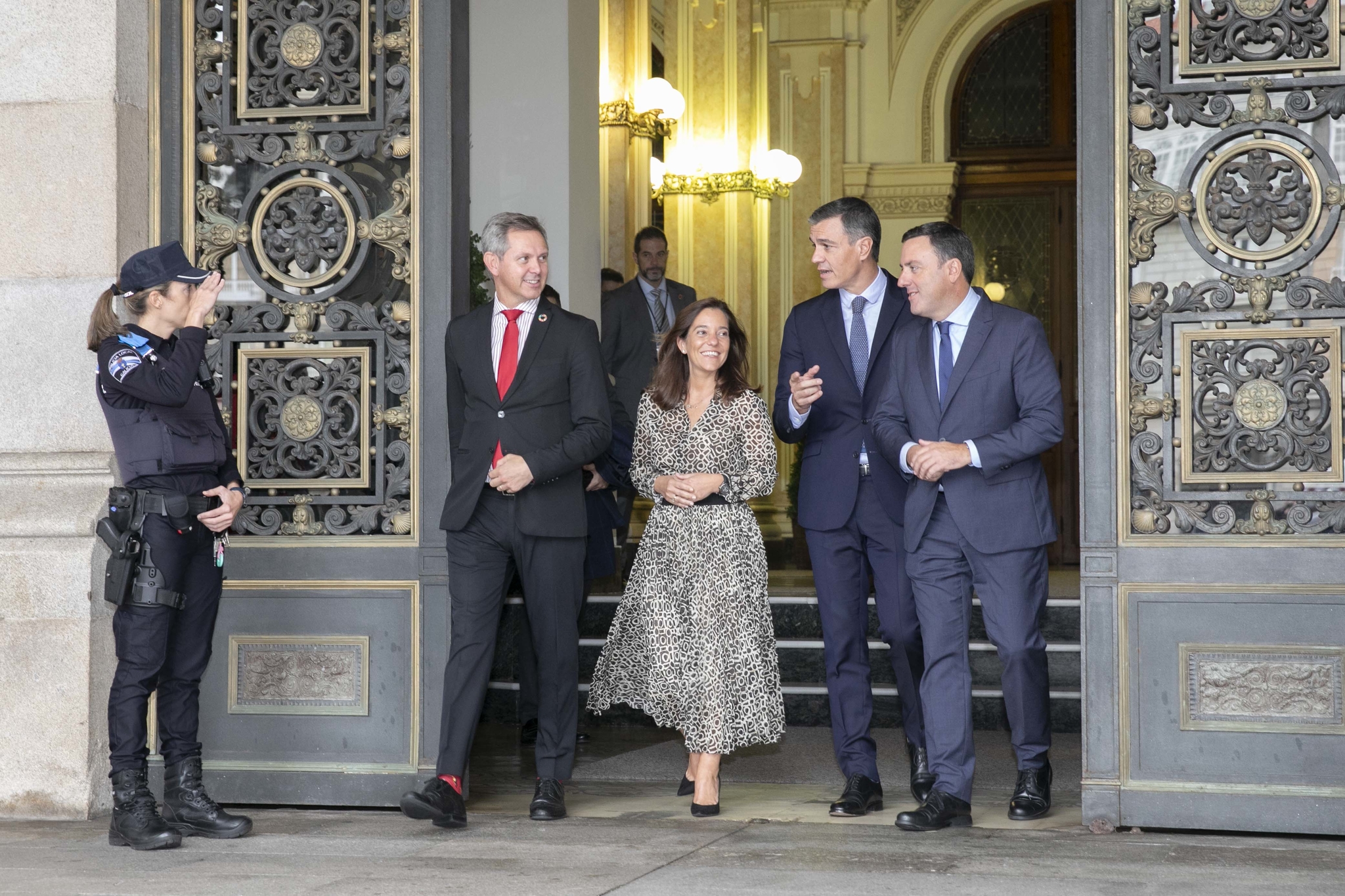 Con Pedro Sánchez viaxan a Galicia oito ministros do seu gabinete cuxa lista a conforman as tres vicepresidentas do Goberno xunto cos titulares das carteiras de Asuntos Exteriores, Unión Europea e Cooperación; Defensa; Industria, Comercio e Turismo; Agricultura, Pesca e Alimentación e Universidades.