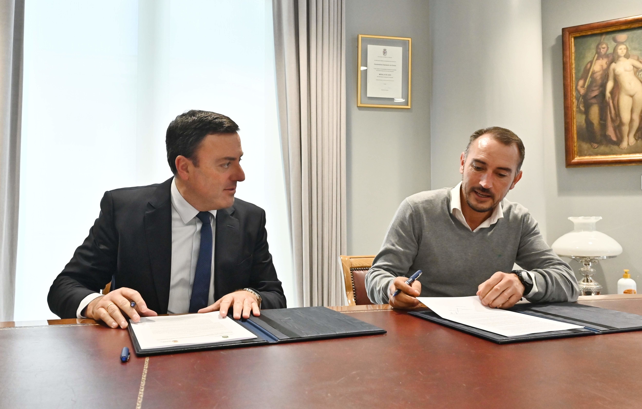 Valentín González Formoso e o alcalde de Padrón, Antonio Fernández, asinaron hoxe o convenio polo que a administración provincial sufraga o 70% da actuación