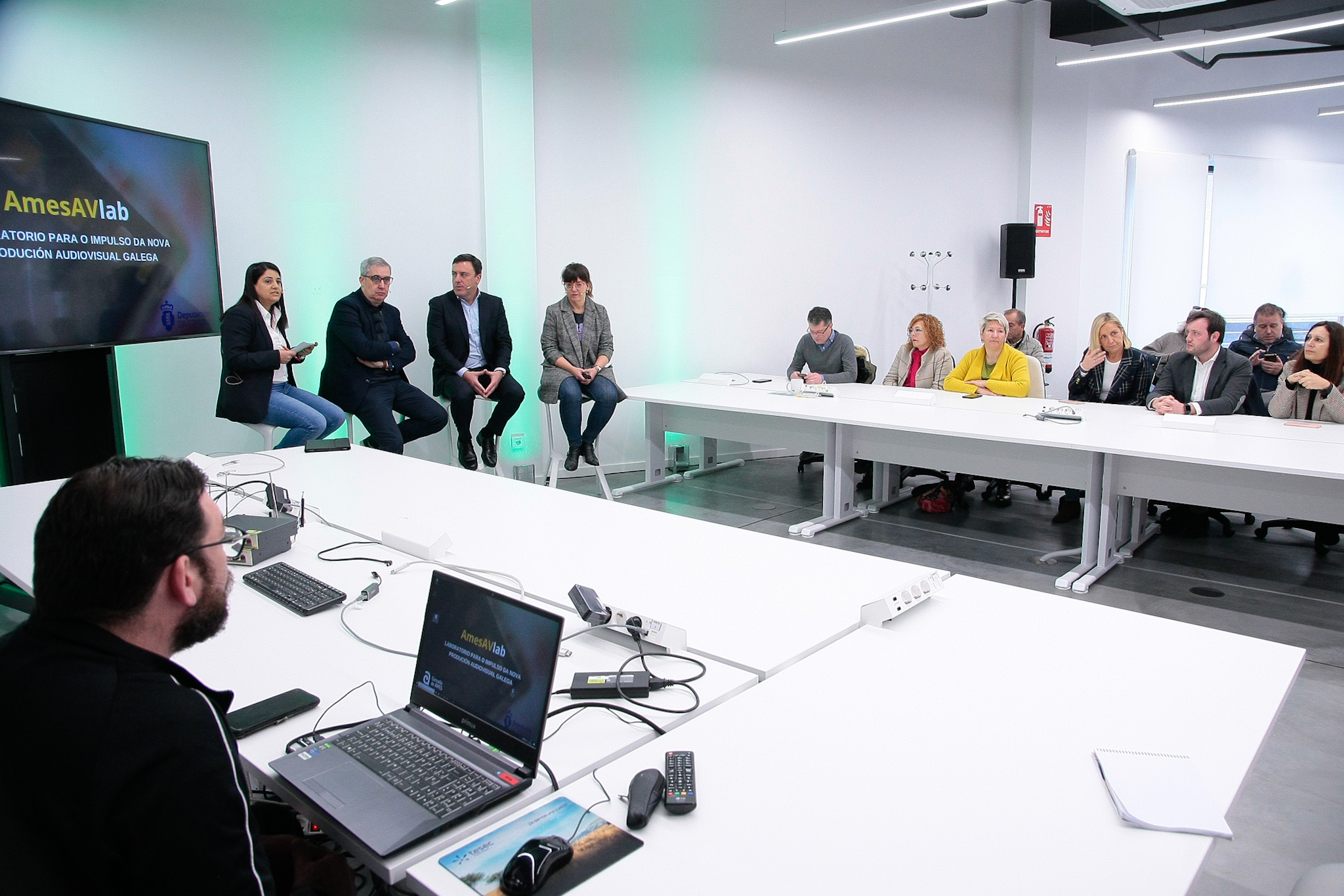 Formoso destaca a importancia de “dotar de ferramentas ao talento propio para que radique en Galicia” durante a presentación do laboratorio ‘Ames Av Lab’