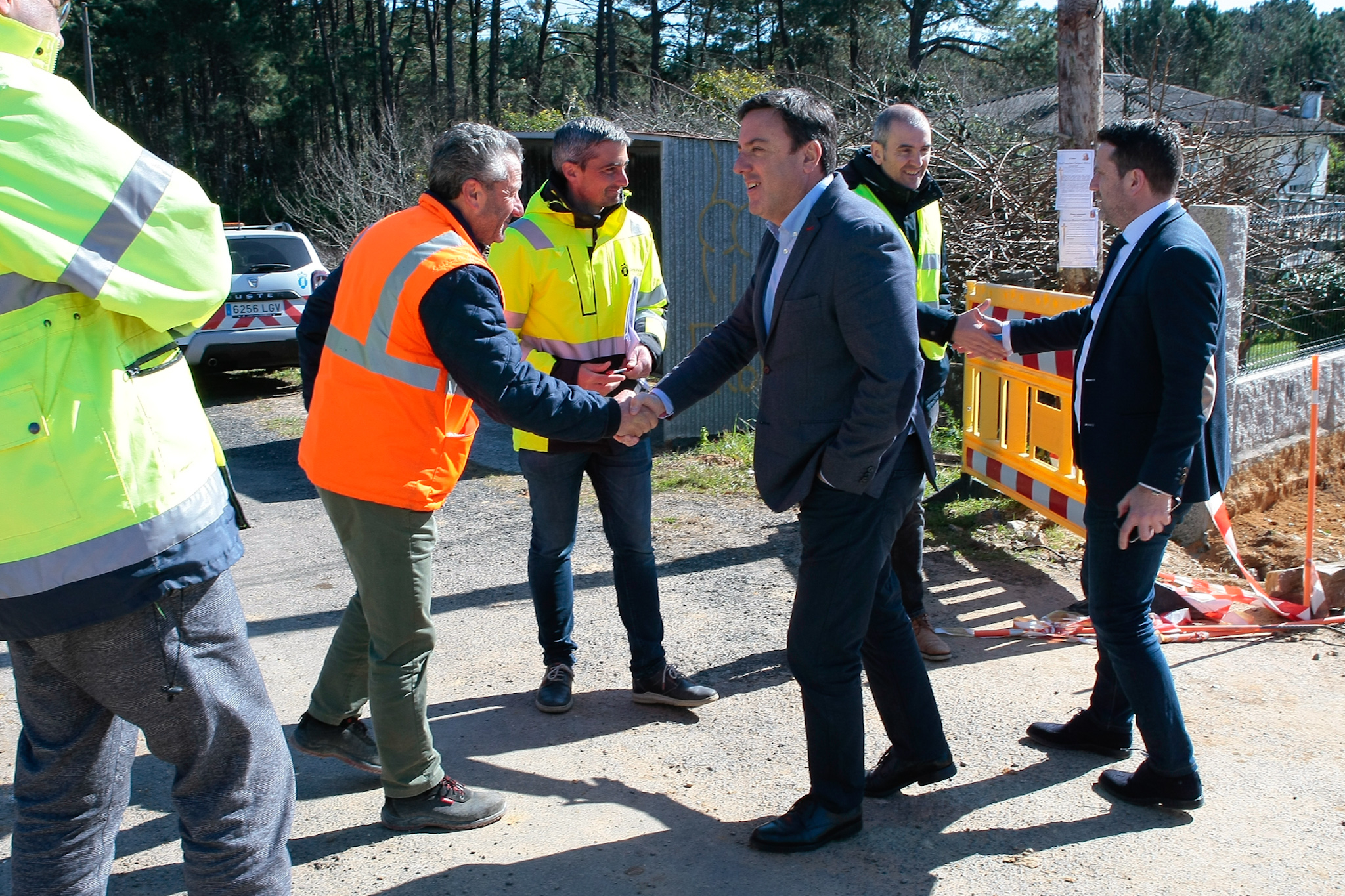 Valentín González Formoso e José Ramón Romero supervisaron hoxe o reinicio dos traballos tras a rescisión do anterior contrato xunto coa deputada provincial Sandra González e o tenente alcalde Luis Ruíz