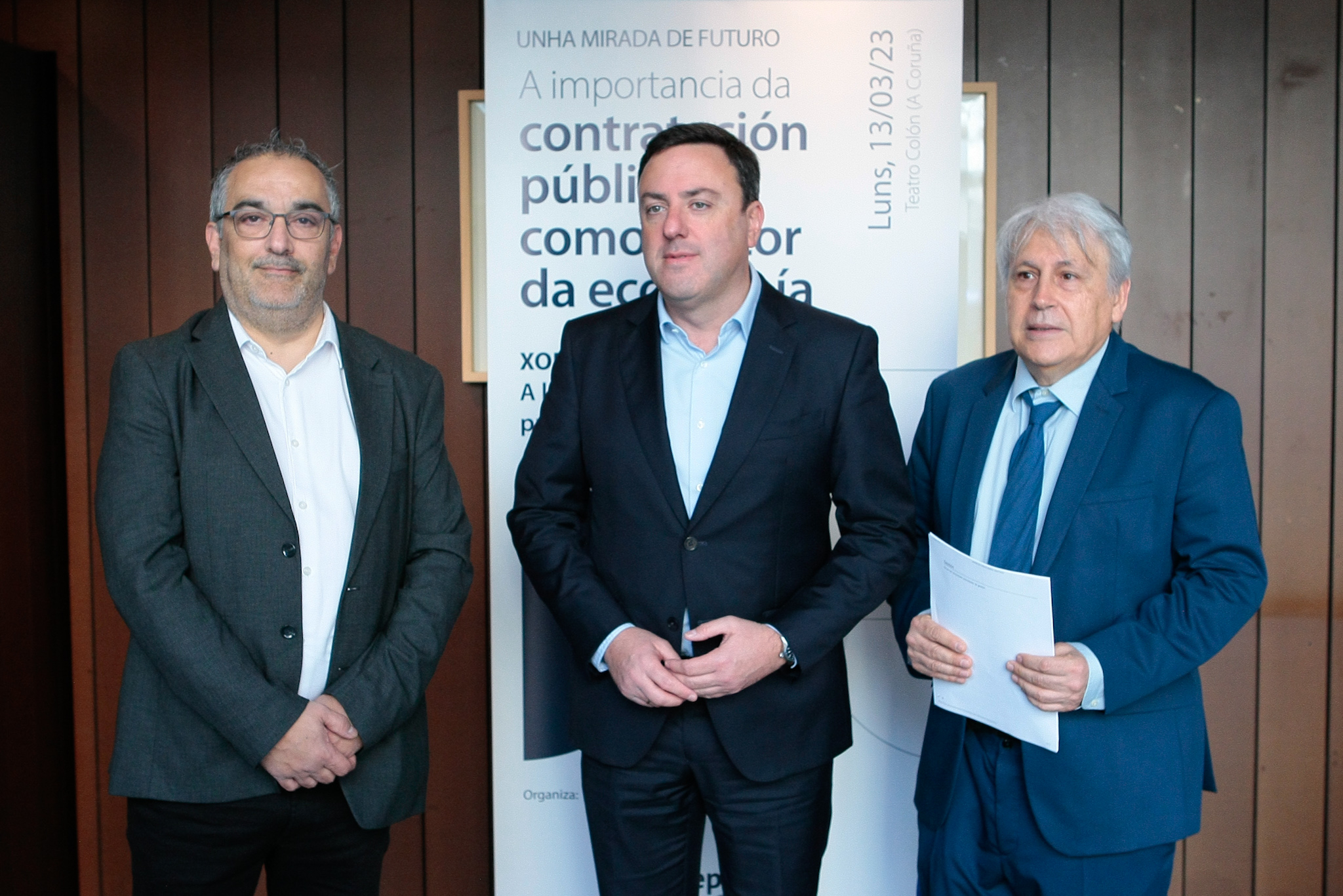 Tras a inauguración por parte do presidente da Deputación, tivo lugar o primeiro relatorio baixo a epígrafe "Reflexións tras cinco anos da Lei de contratos do sector público", a cargo de Santiago González-Varas Ibáñez, catedrático de Dereito Administrativo da Universidade de Alicante; seguido de "Unha contratación xusta para un emprego de calidade", a cargo de Diego Vázquez Reino, presidente da Asociación Provincial de Empresarios da Construción da Coruña (APECCO).