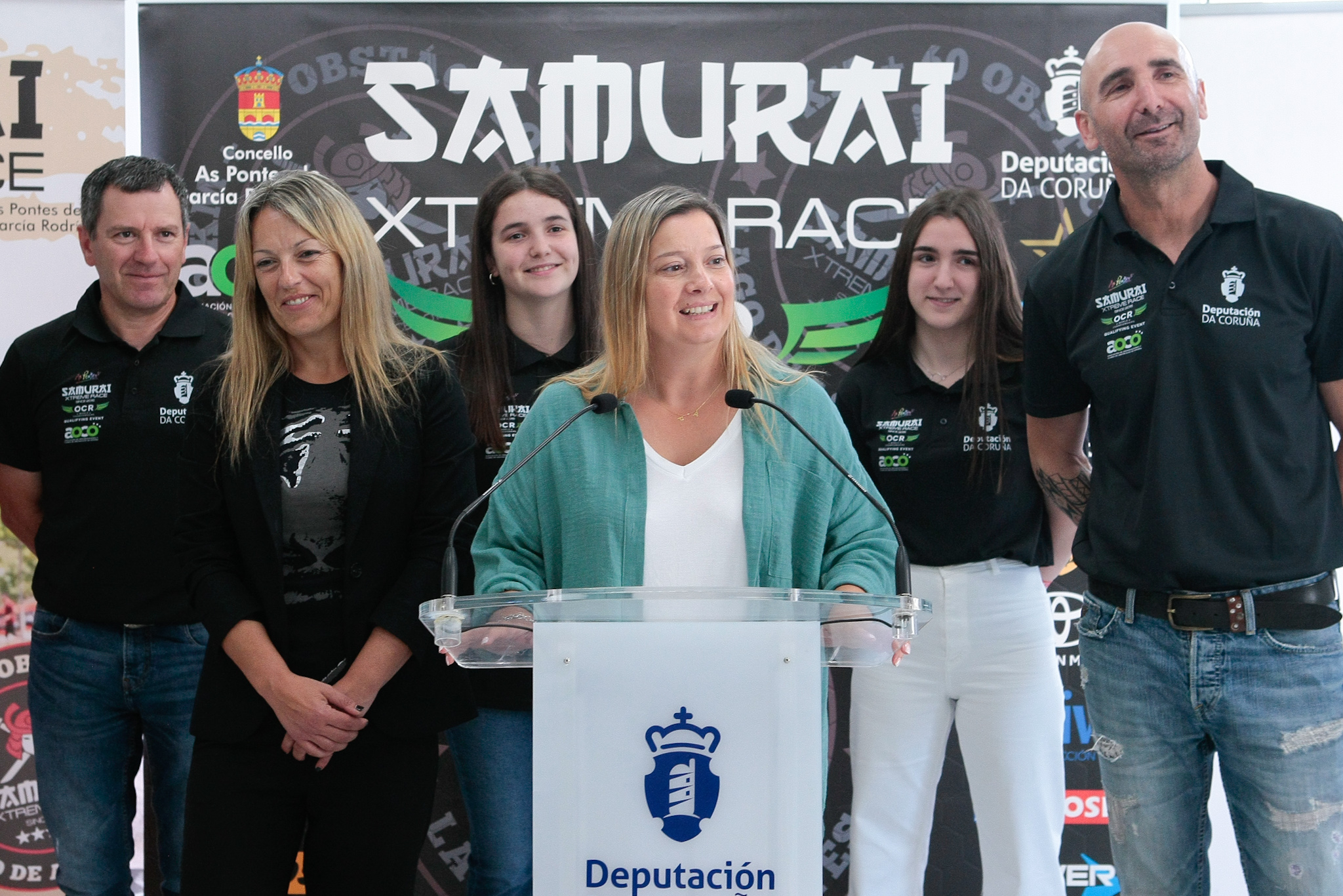 A deputada en funcións de Deportes, Cristina Capelán Cancelo, o presidente do Samurai Sports Club, José Rodríguez, e as concelleiras das Pontes Ana Pena e Elena López presentaron hoxe na sede da Deputación da Coruña a edición 2023 da Samurai Xtreme Race, que se celebrará no entorno do lago das Pontes o vindeiro domingo, 2 de xullo. A proba é puntuable para o Campionato Nacional e clasificatoria para o Campionato Mundial de Carreiras de Obstáculos que se celebrará en Mamooth Lakes, Califonia (Estados Unidos) en setembro.