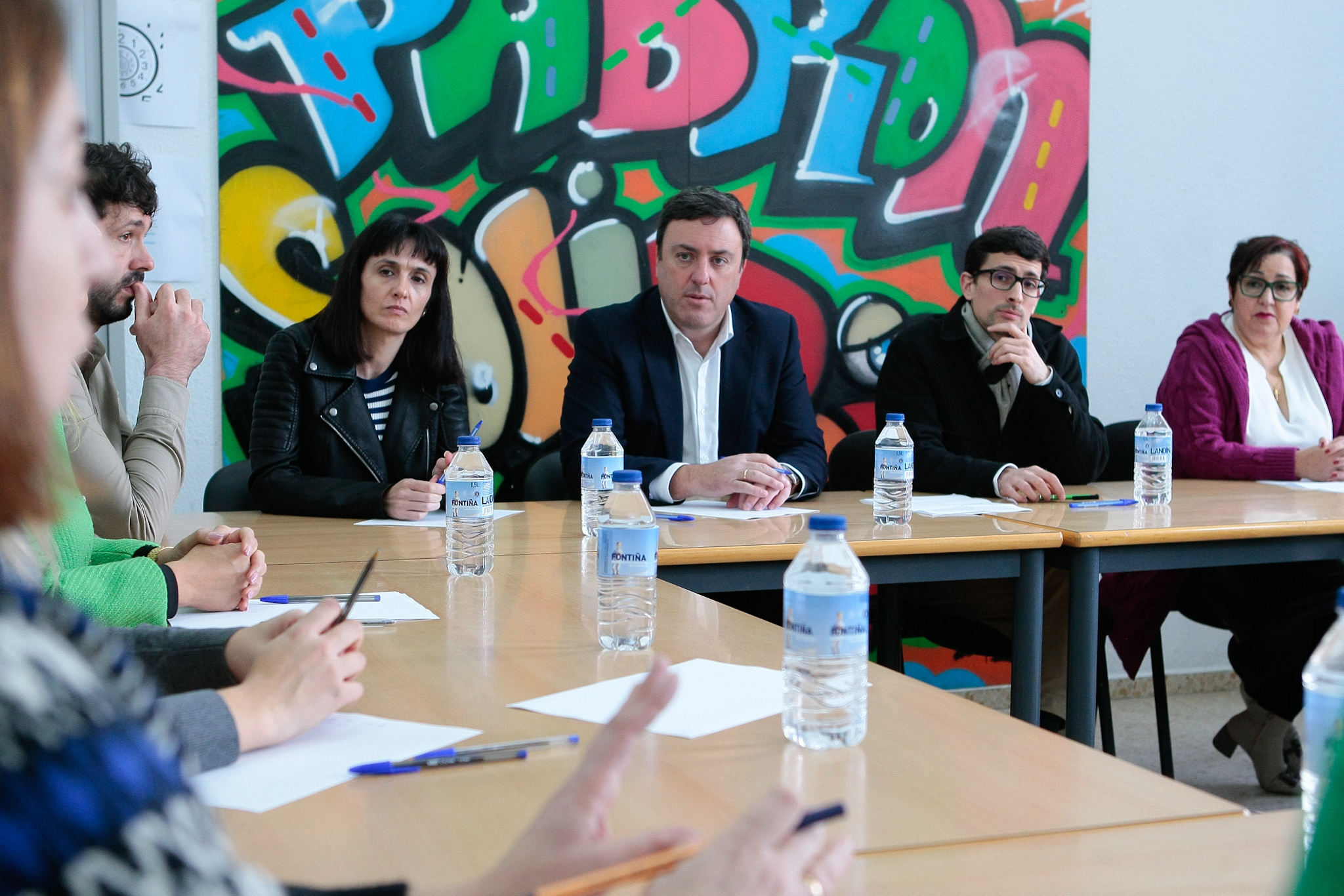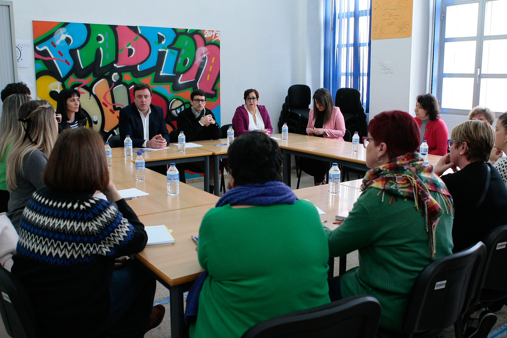 Durante a visita, Formoso mantivo un encontro cun grupo de traballadoras do Servizo de Axuda no Fogar do municipio, no que se interesou polo seu traballo diario e as súas condicións laborais.