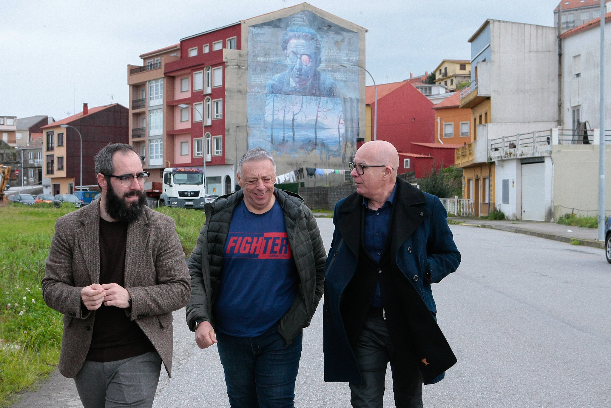 O vicepresidente e deputado de turismo, Xosé Regueira, visitou esta mañá o Concello de Rianxo para coñecer os murais do festival municipal de arte urbana, un dos beneficiarios do programa DP0040 da Deputación da Coruña, que destina 149.980 euros a concellos da provincia para a realización de festivais de arte pública urbana na modalidade de pintura mural durante o ano 2024.