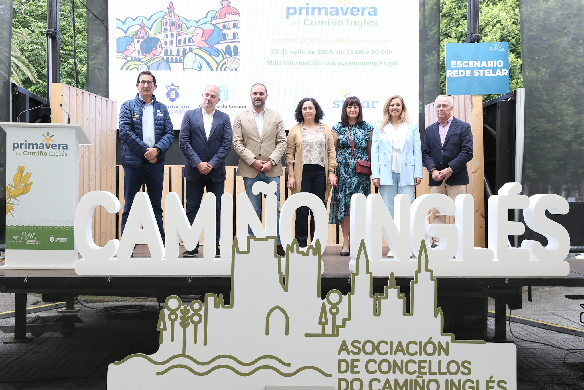 Os Xardíns de Méndez Núñez, na cidade da Coruña, acollen durante a xornada deste sábado a feira Primavera no Camiño Inglés, que volve reunir aos dezaoito concellos polos que discorre este itinerario xacobeo nun gran evento organizado pola Asociación de Concellos do Camiño e a Deputación da Coruña co obxectivo de promocionar os múltiples atractivos etnográficos, culturais, naturais e gastronómicos desta ruta, que conecta Ferrol e A Coruña con Santiago de Compostela.