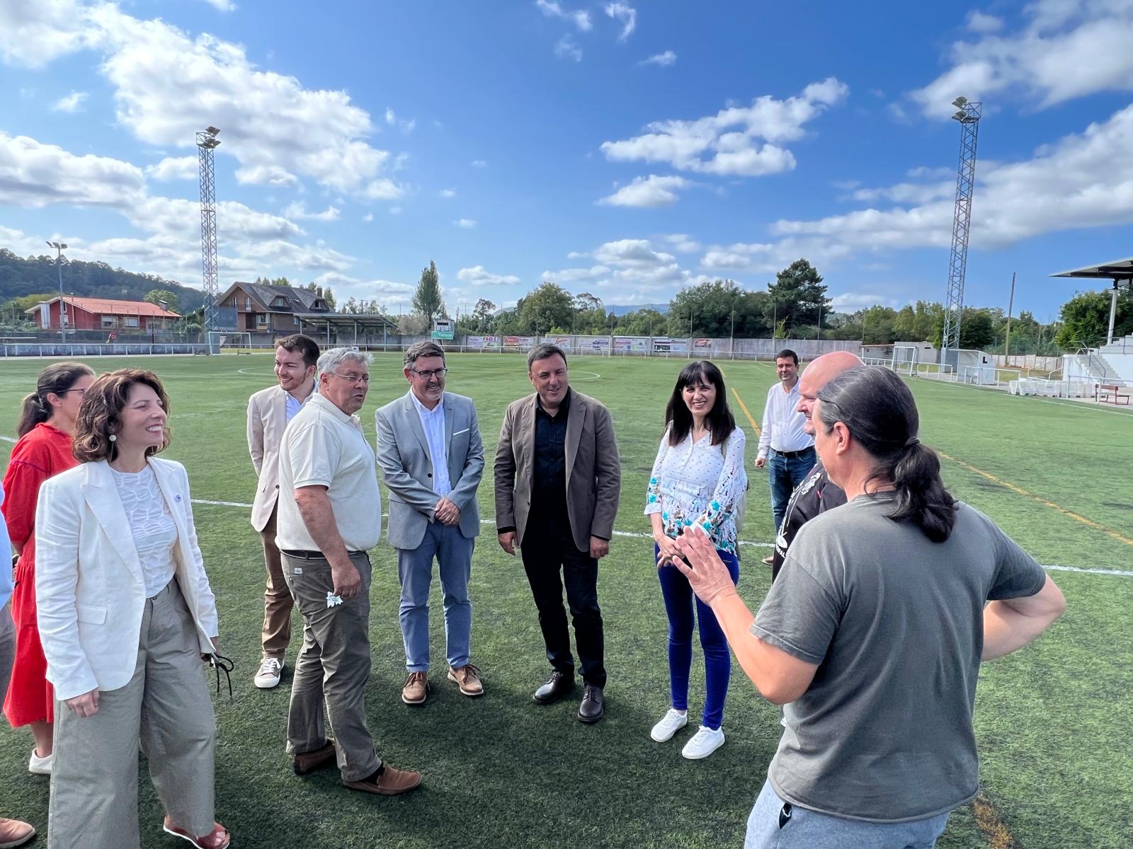 O presidente, o alcalde e o segundo tenente de alcalde e concelleiro de Deportes, José Antonio Caamaño, acompañados das deputadas provinciais Soledad Agra Tuñas e Mar García Vidal e dos portavoces dos distintos grupos políticos da corporación municipal, visitaron o campo de fútbol do Conchido, onde se executarán as obras que permitirán, ademais de renovar o terreo de xogo, ampliar a superficie de herba artificial en algo máis de 2 metros de ancho e largo, resultando un campo de 60 x 100 metros, e que estará delimitado por varandas e cun sistema de rego e drenaxe perimetral para o seu adecuado mantemento.