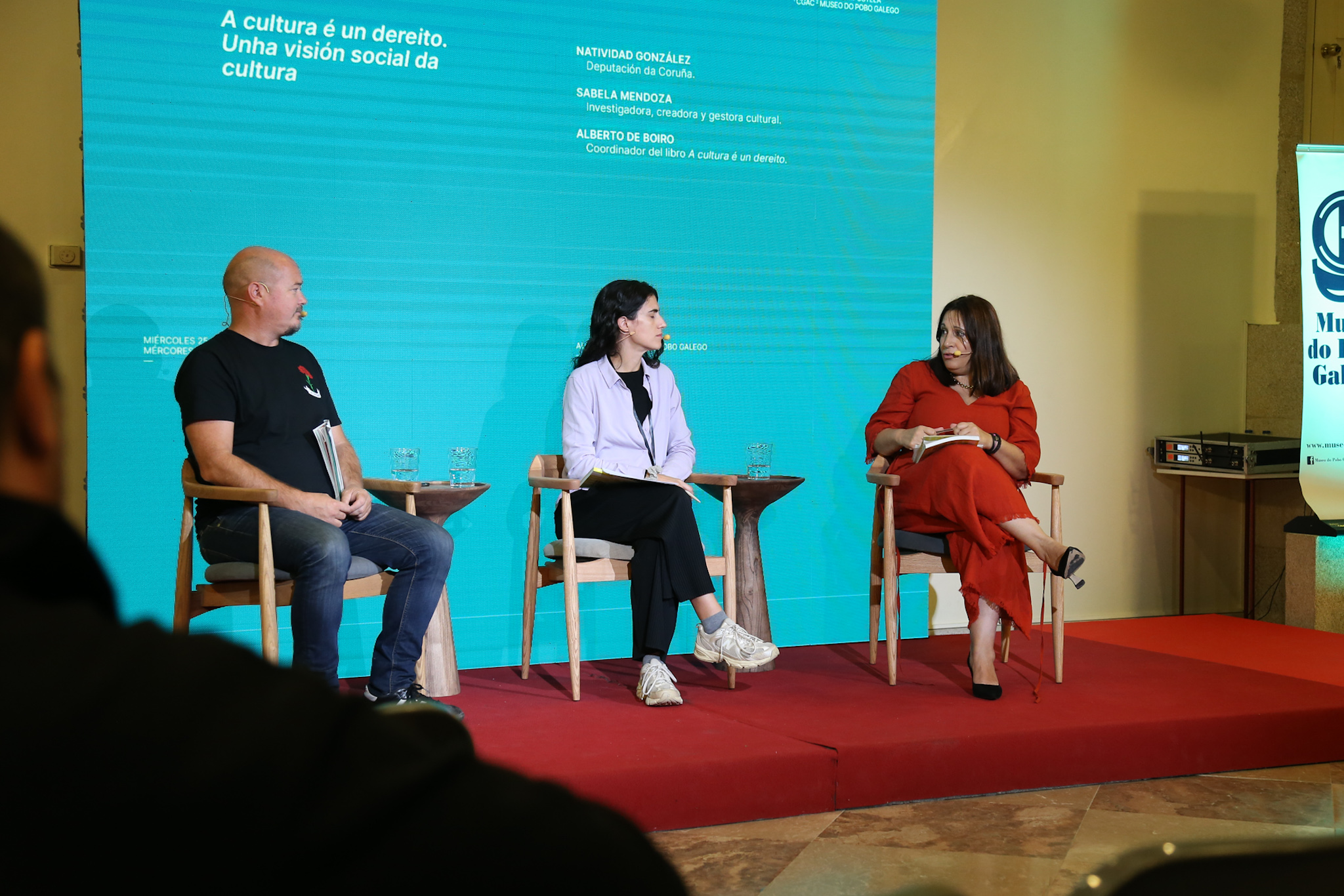 O Museo do Pobo galego acolleu hoxe a presentación do libro A cultura é un dereito. Unha visión social da cultura; unha actividade que se enmarca no programa do 'X Encontro Cultura e Cidadanía' do Ministerio de Cultura, que se está a desenvolver dende onte en Santiago de Compostela. A deputada de cultura, Natividade González, e a investigadora, creadora e xestora cultural, Sabela Mendoza foron as encargadas de presentar a publicación, nunha xornada moderada polo seu coordinador, Alberto de Boiro.