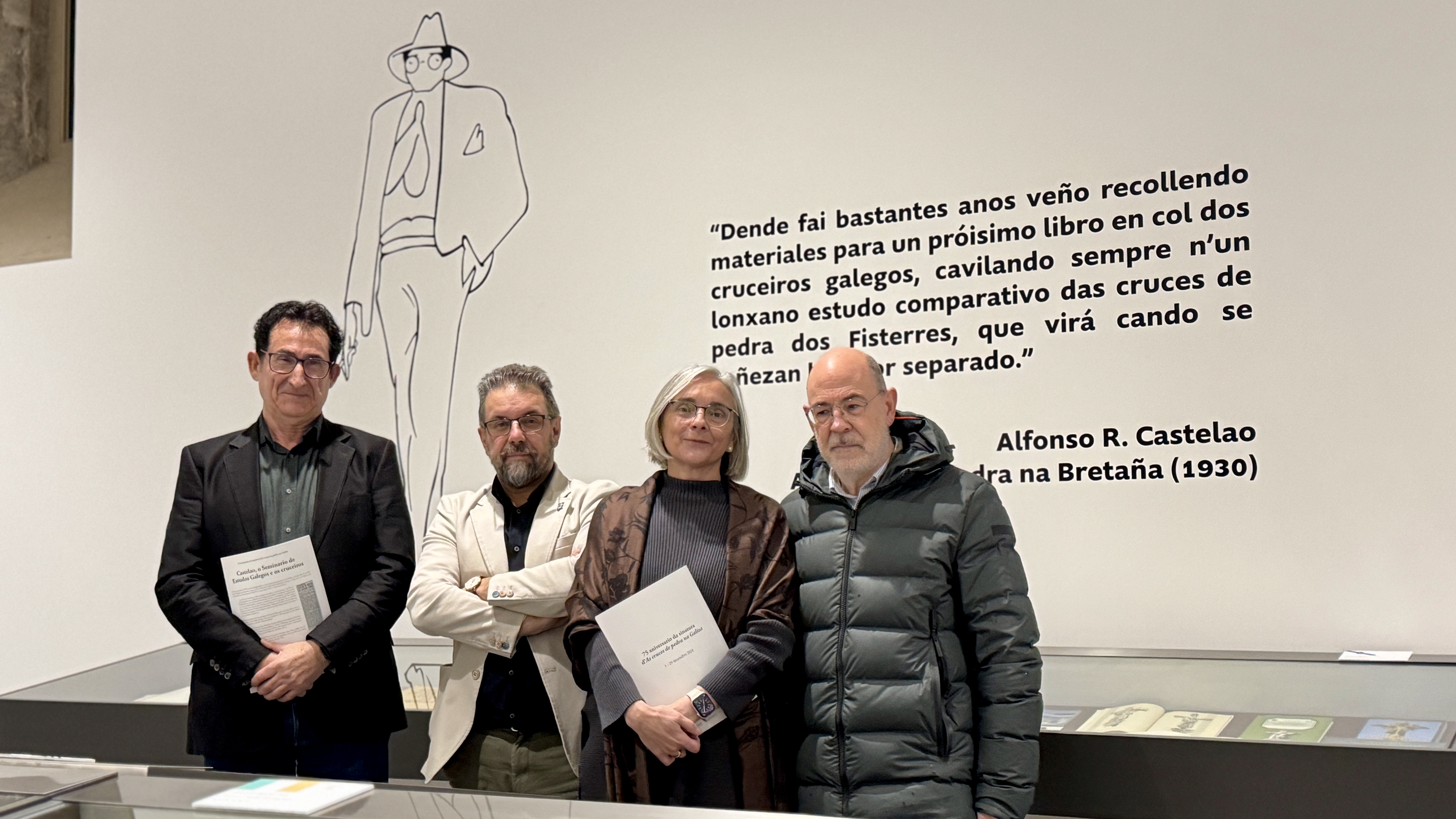 Con motivo desa conmemoración, durante este mes de decembro poderá verse no Museo do Pobo Galego a mostra bibliográfica "75 cabodano da sinatura de As cruces de pedra na Galiza". Unha selección bibliográfica en homenaxe ao máis coñecido polígrafo rianxeiro que inclúe unha escolma de fondos propios, entre os cales primeiras edicións de As cruces de pedra na Galiza e As cruces de pedra na Bretaña, así como bibliografía de Portugal, Irlanda, Bretaña, Illa de Man, Cornualles e Gales. Unha escolma, na que tamén hai obras cedidas por persoas socias e patróns, que parte da idea expresada hai décadas por Castelao de que non seremos conscientes da gran riqueza que temos en relación coas cruces de pedra até que coñezamos este fenómeno no resto de fisterras atlánticas, e que amosa a proliferación nestas sete décadas de numerosos estudos sobre as cruces de pedra nas diferentes fisterras atlánticas europeas.