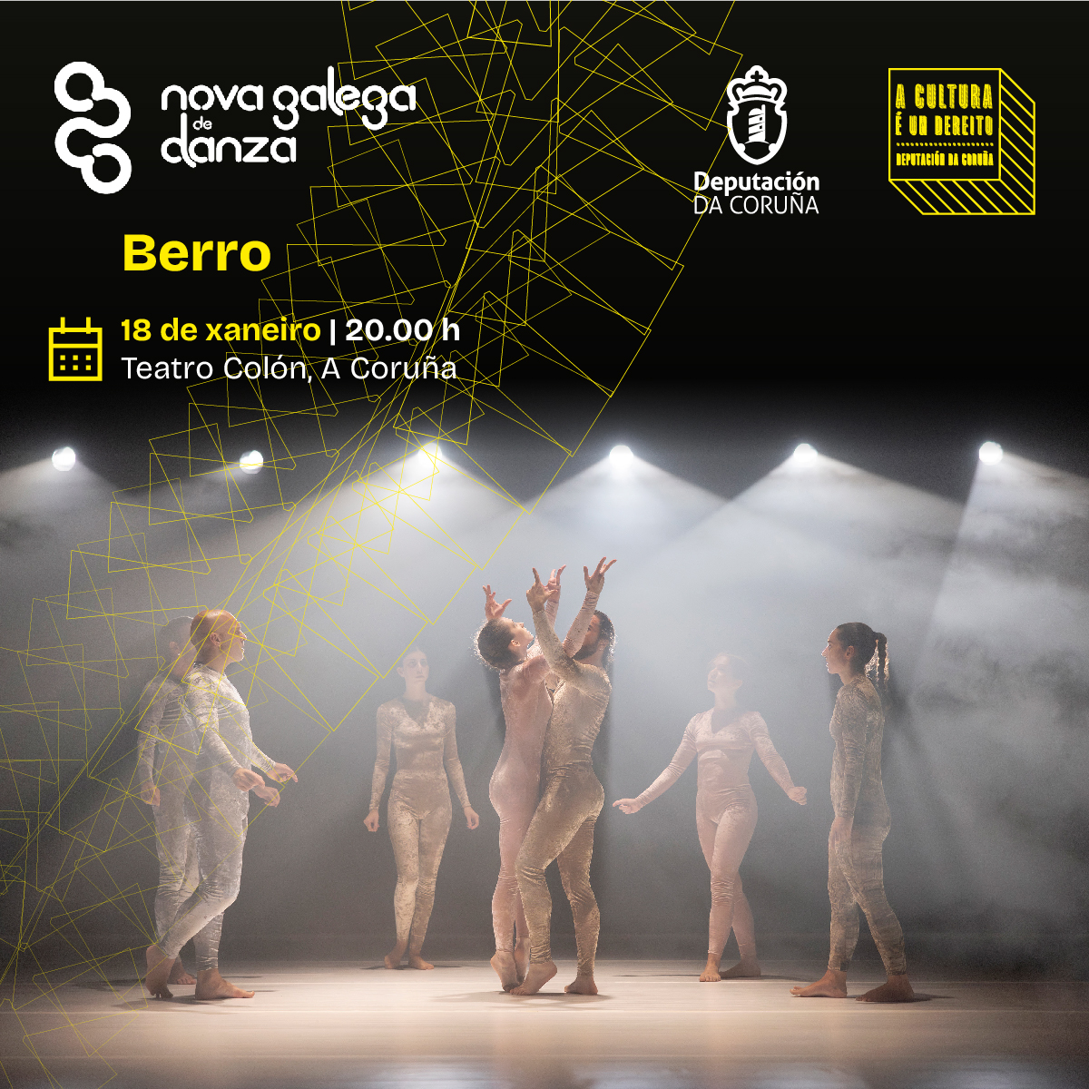 A compañía Nova Galega de Danza, baixo a dirección artística de Jaime Pablo Díaz, desembarca na Coruña grazas ao apoio da Deputación este mes de xaneiro para presentar no Teatro Colón un fito único: unha antoloxía con tres das súas pezas máis celebradas e recentes: "Leira", "Berro" e "Dique". Nesta 'Antoloxía de Nova Galega de Danza', a muller toma centro do escenario nunha viaxe a través da terra, a raíz, a memoria, a tradición, a resiliencia, o empoderamento e a fortaleza.