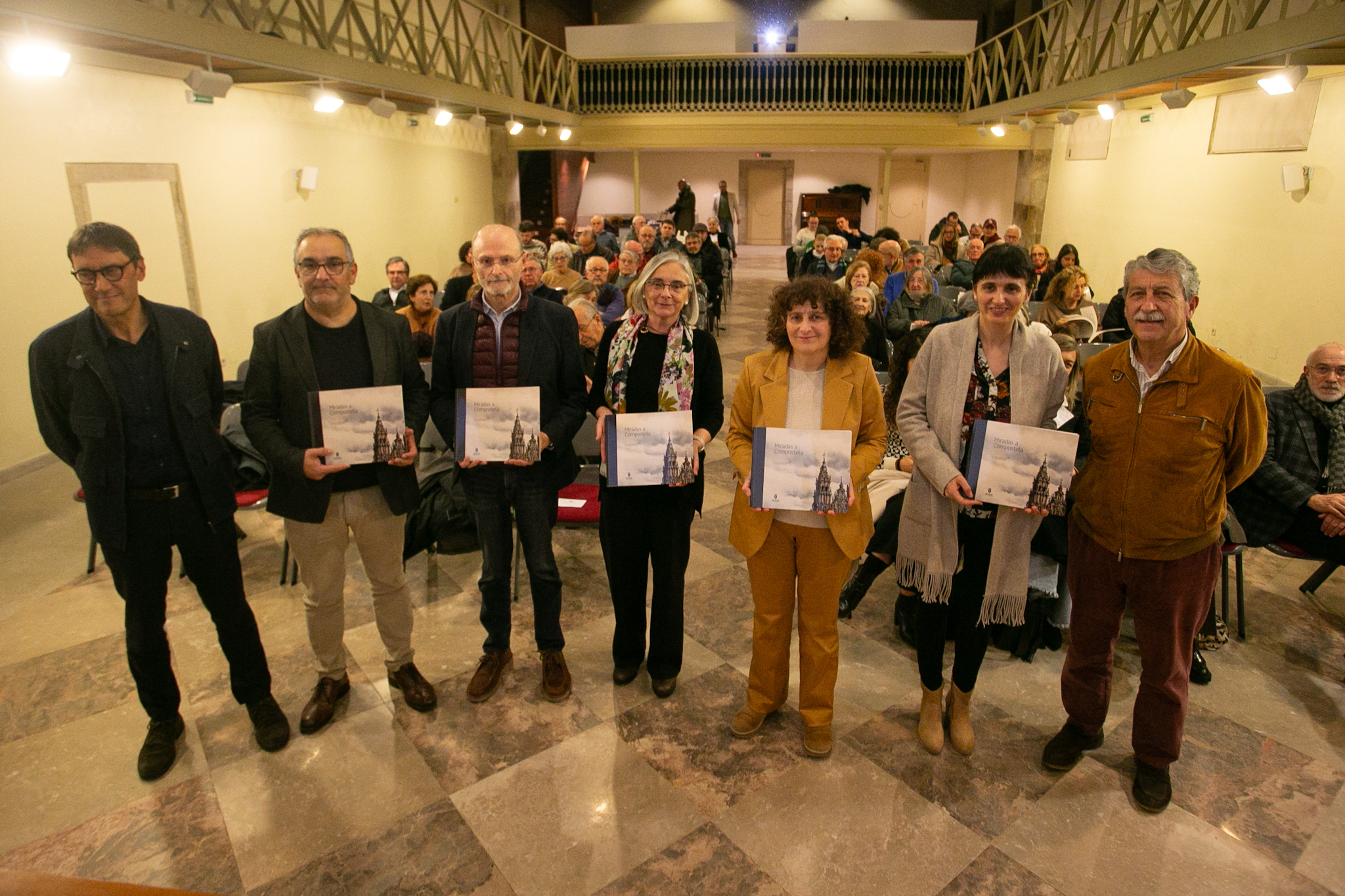 O Museo do Pobo Galego acolleu esta tarde a presentación do libro Miradas a Compostela, editado pola Deputación da Coruña. Unha obra que ofrece unha nova perspectiva sobre o patrimonio histórico e artístico de Santiago de Compostela. Este traballo, realizado por José Manuel Yáñez e Alfredo Vigo Trasancos, combina o talento artístico coa contextualización histórica de cada un dos enclaves seleccionados.