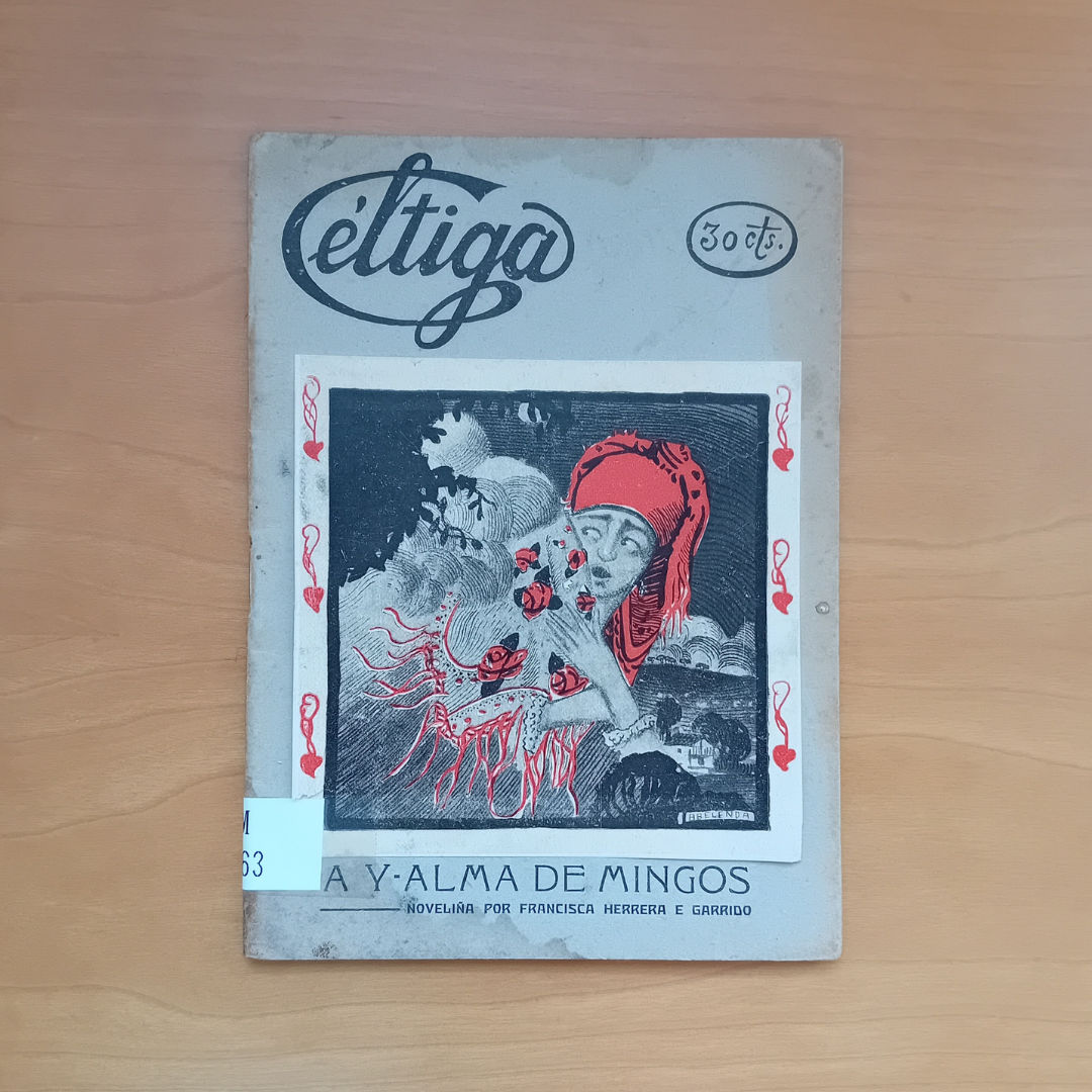 A Y-alma de Mingos: noveliña de Francisca Herrera e Garrido, a única escritora que atopamos na colección. Esta obra, a publicación número 8 de Céltiga, segue a liña temática doutras obras da autora e fálanos dun triángulo amoroso. A expresiva ilustración da portada é do pintor coruñés Manuel Abelenda.