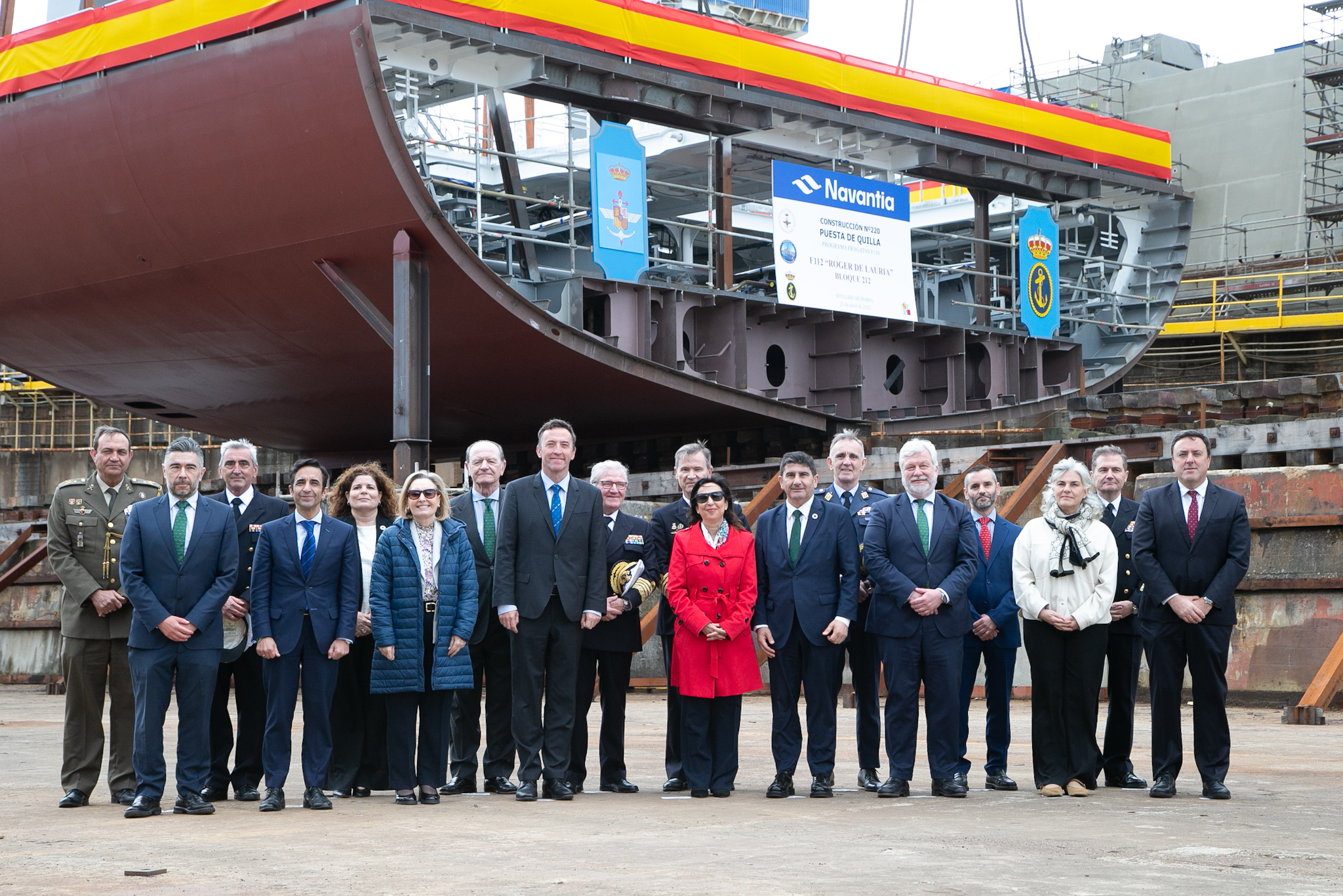 O presidente da Deputación da Coruña, Valentín González Formoso, participou este venres no acto de posta da quilla da fragata F-112 "Roger de Lauria" e o corte de chapa da fragata F-113, que tivo lugar nas instalacións de Navantia en Ferrol, nun evento que estivo presidido pola ministra de Defensa, Margarita Robles e que contou coa presenza tamén do presidente de Navantia, Ricardo Domínguez, o delegado do Goberno en Galicia, Pedro Blanco, e o alcalde de Ferrol, José Manuel Rey Varela, entre outras autoridades.