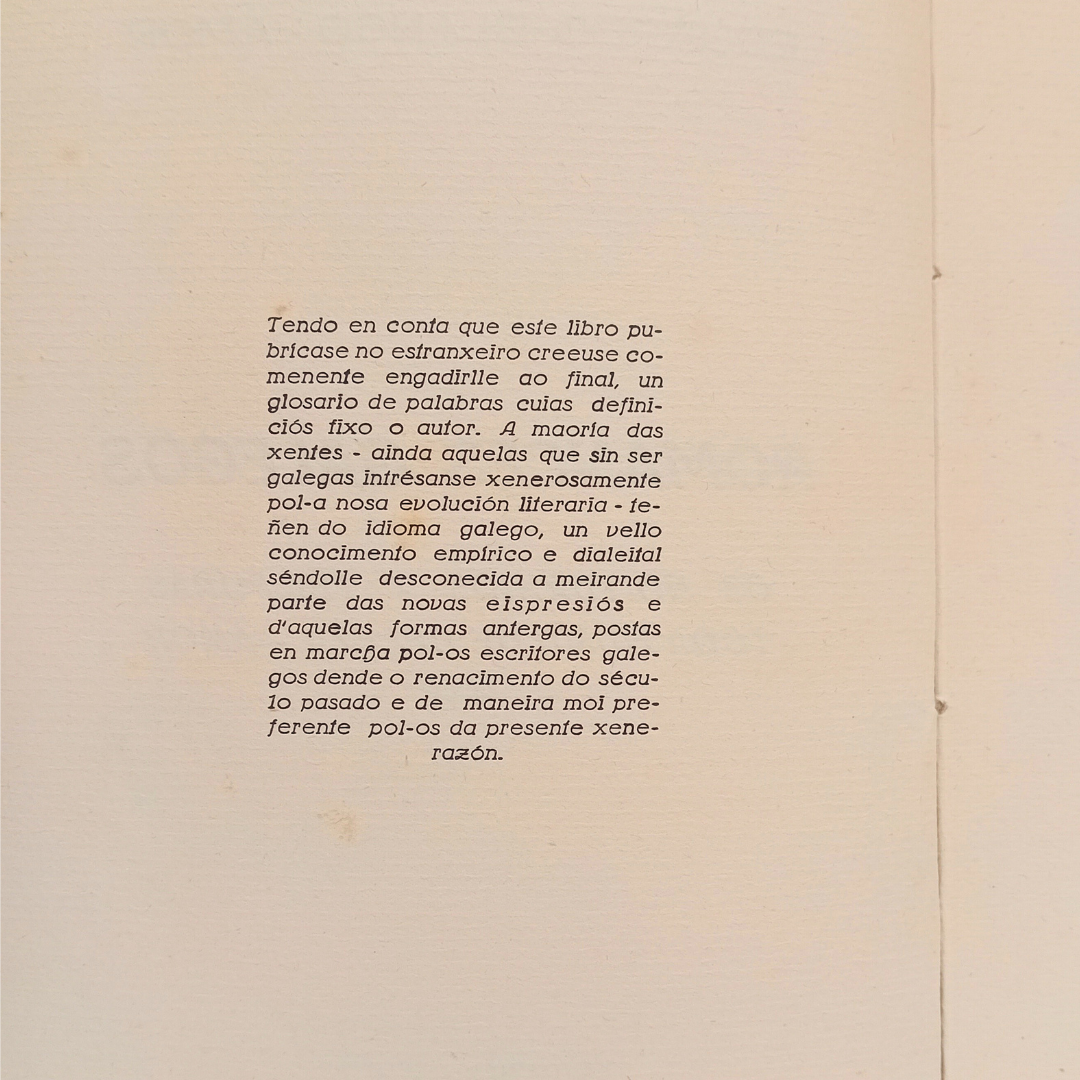Romances Galegos é unha obra en galego publicada en Arxentina. O autor, moi consciente disto, deixa aos seus lectores un glosario de palabras galegas no que el mesmo fai as definicións. Algo que nos deixa unha idea clara: o galego como unha lingua universal que pode chegar a lectores de todo o mundo.