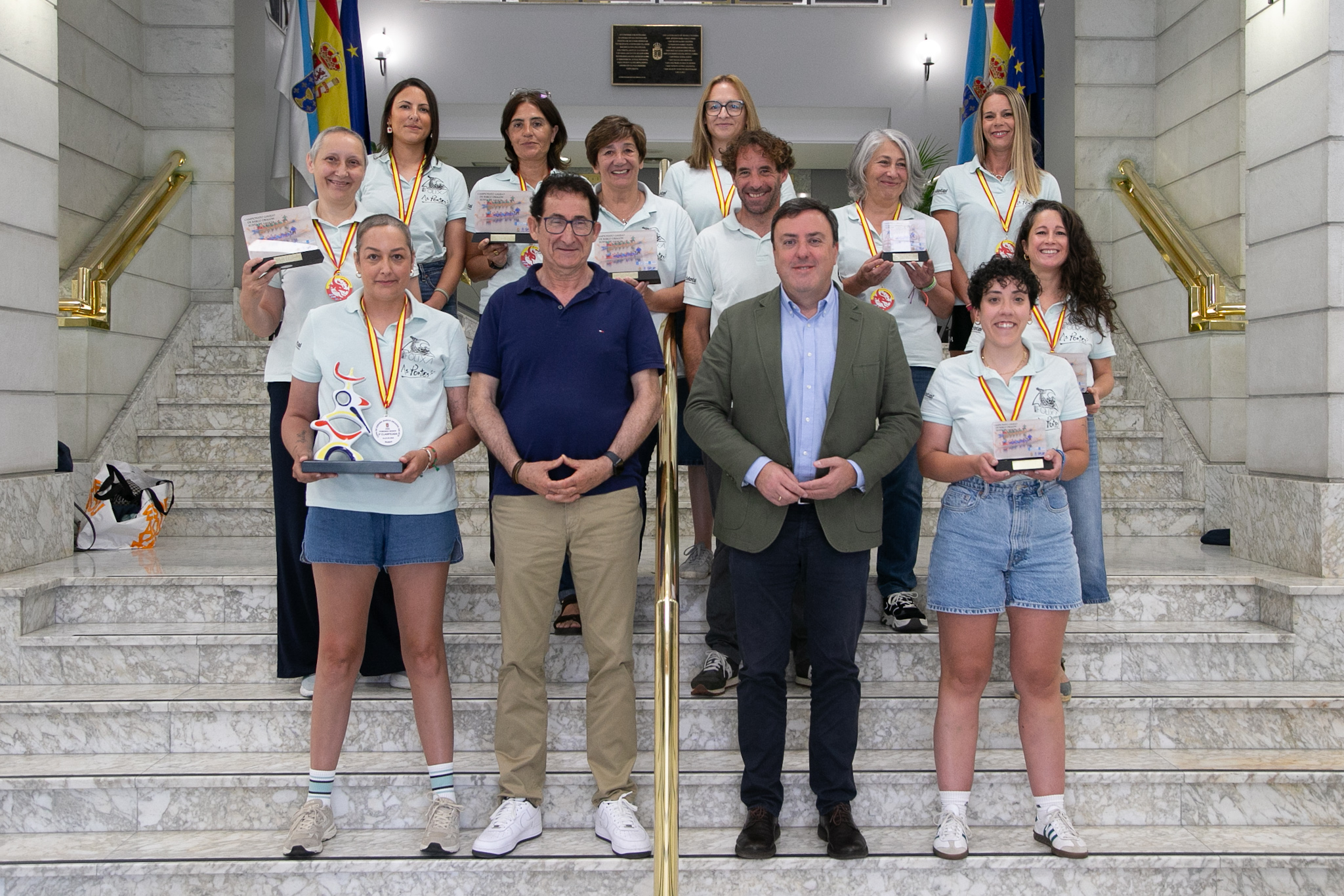 Formoso felicitou persoalmente a todas as integrantes do equipo —Raquel, Mónica, Eli, Sinda, Amparo, Isa, Ángeles, Tania, Chus, Miriam, Lina, Emma e María—, así como ao seu adestrador e temoneiro, Iván, destacando que "completastes unha grande fazaña proclamándovos campioas galegas, o que vos converte nas mellores embaixadoras de Galicia para o campionato estatal".