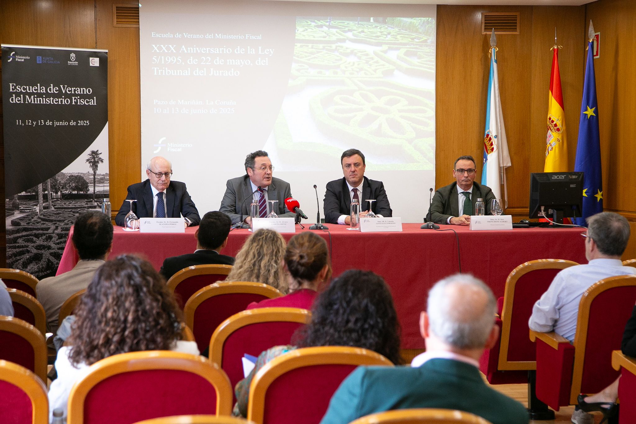 A Escola de Verán, organizada pola Fiscalía Xeral do Estado en colaboración coa Fiscalía Superior de Galicia e coa Deputación da Coruña, contou ao longo da semana con relatorios de expertos e expertas do ámbito xurídico e académico, centrados nos avances e retos do tribunal do xurado tras tres décadas de aplicación da norma que regula esta figura de participación cidadá na administración de Xustiza.
