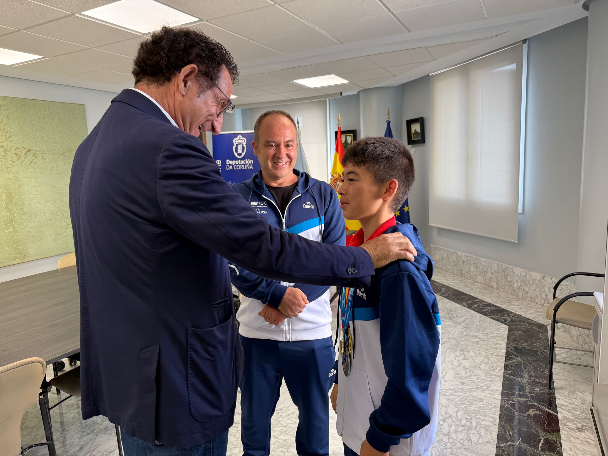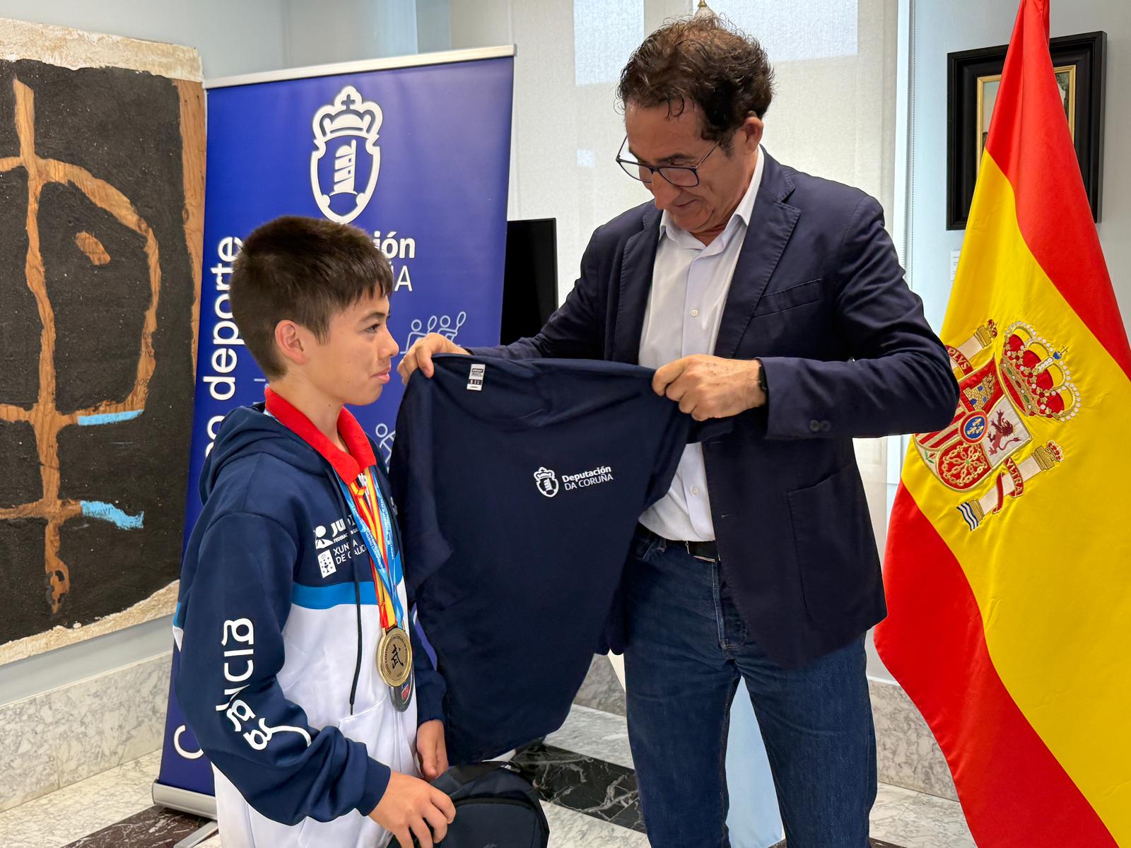O deputado de Deportes, Antonio Leira, recibiu no pazo provincial ao subcampeón de Europa de kung fu na categoría de 12 a 14 anos, Erik Martín. O rianxeiro, o único galego que participou no Europeo celebrado en Grecia, acadou a prata nun torneo no que participaron preto de 500 deportistas de 20 países.