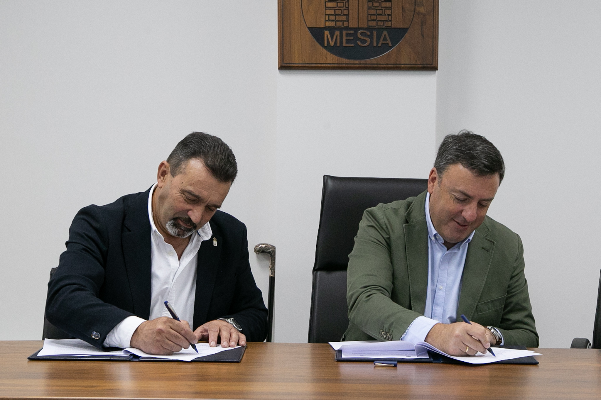 O presidente provincial, Valentín González Formoso, e o alcalde, Mariano Iglesias, asinaron esta mañá en Mesía o convenio de colaboración